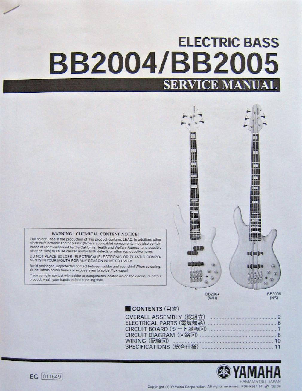 - Yamaha BB2004 and BB2005 Bass Guitar Service Manual and Parts List Booklet.