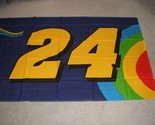 A sure collector's item, a yellow #24 with rainbow on a new blue 3 x 5 ft flag. It has the reinforced headband with grommets on the side to hang or display your colors proudly... Just a couple left.
