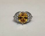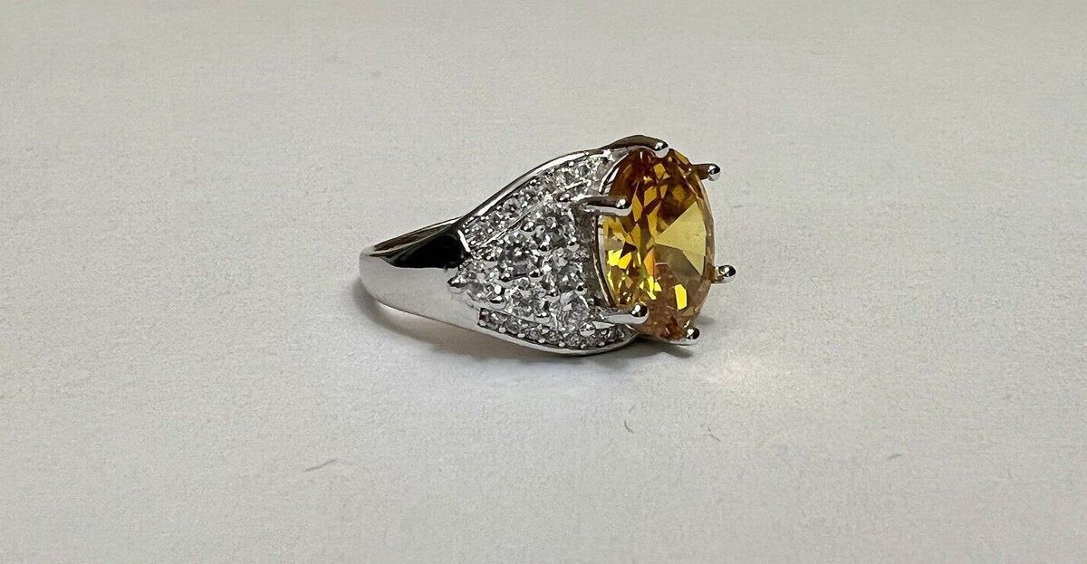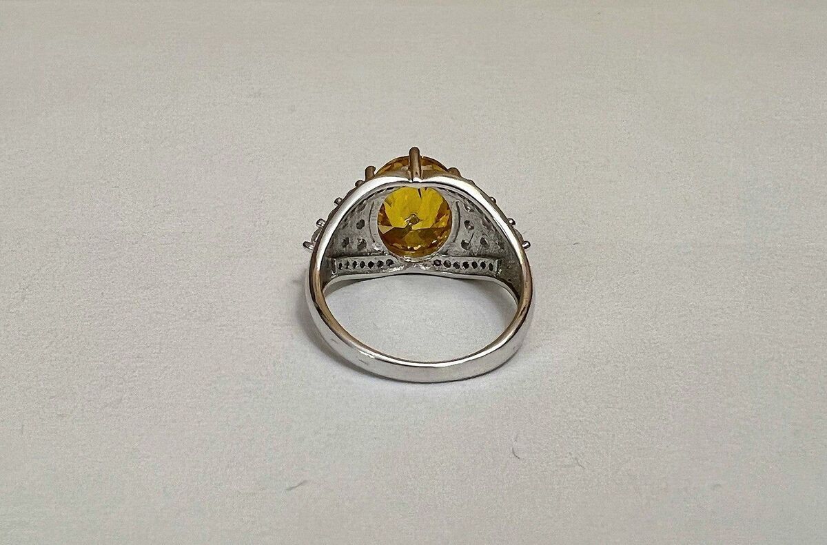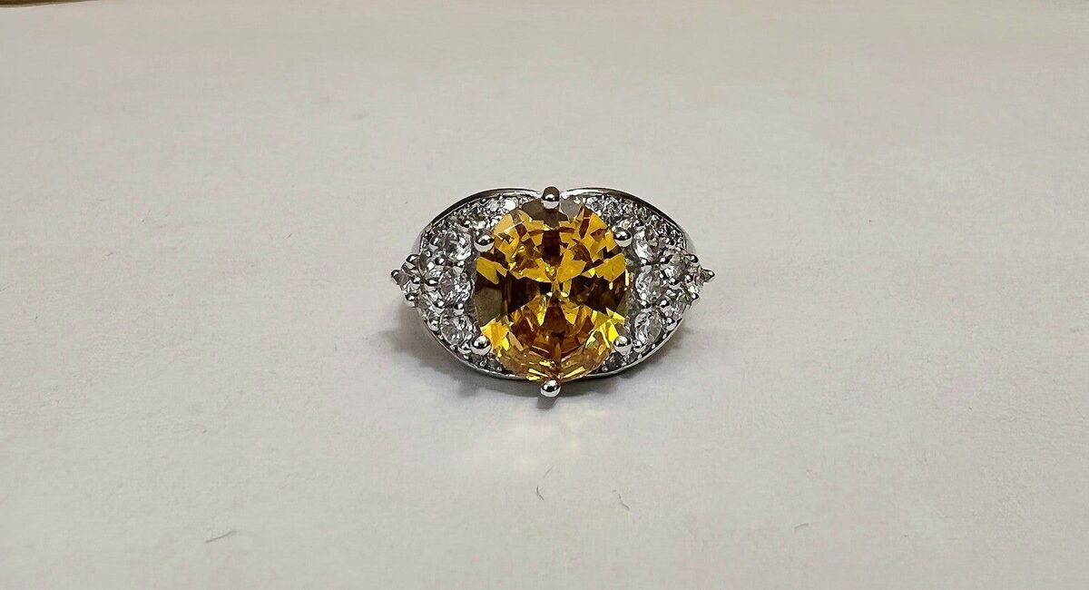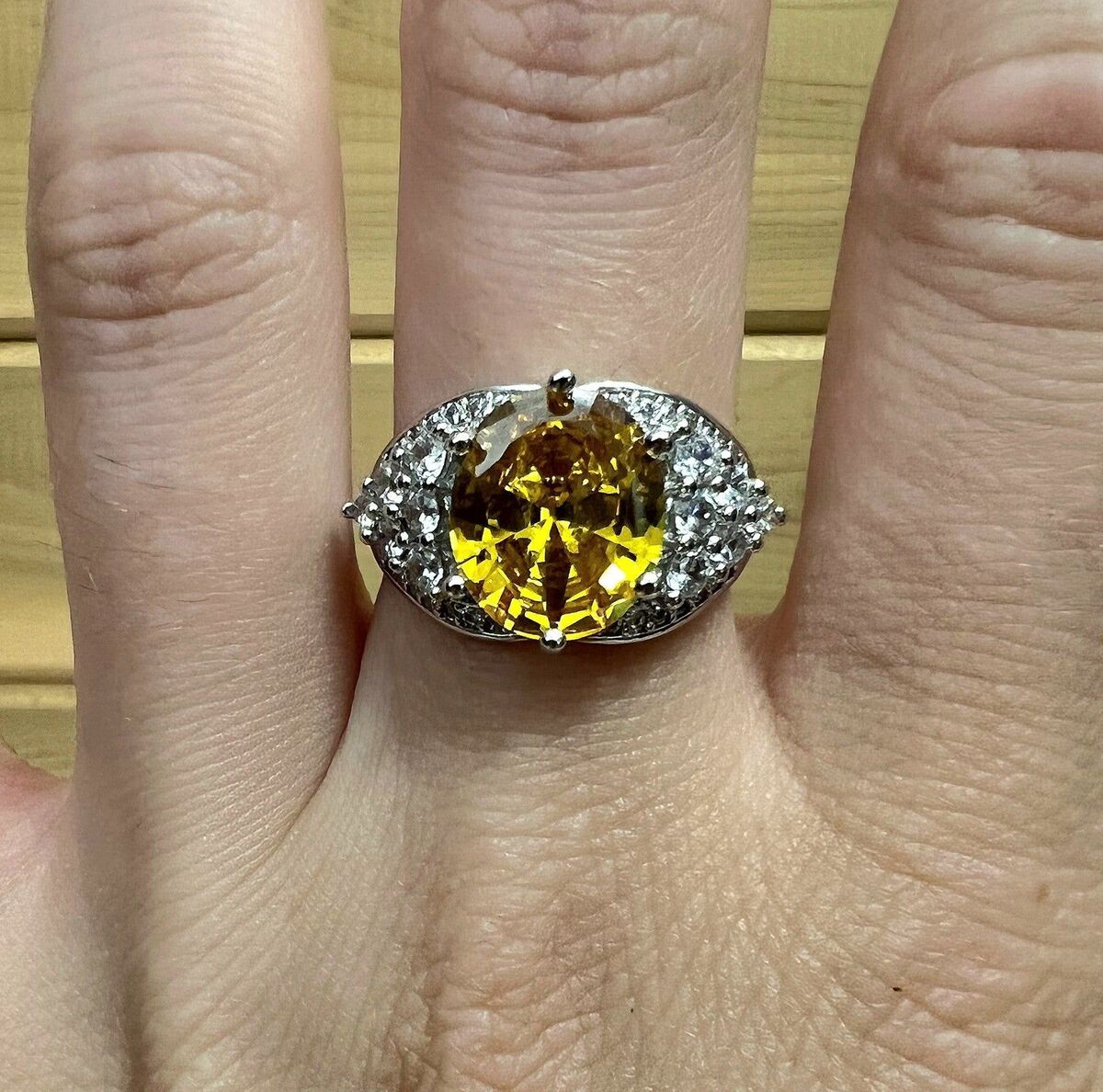 Yellow Colored Oval Gem Ring Silver Colored Band Size 8-10 approx