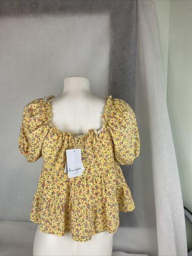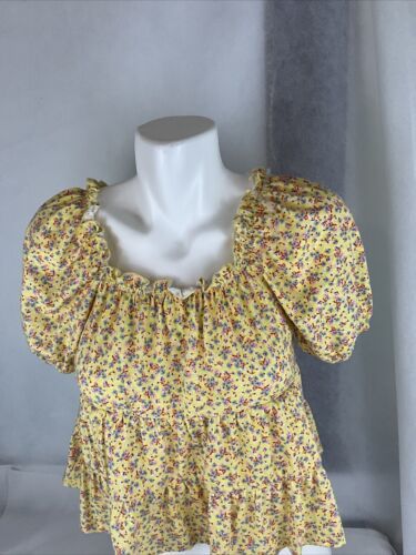 Yellow Floral Short Tiered Top Love Fire Clothing L A NWT Small/Petite