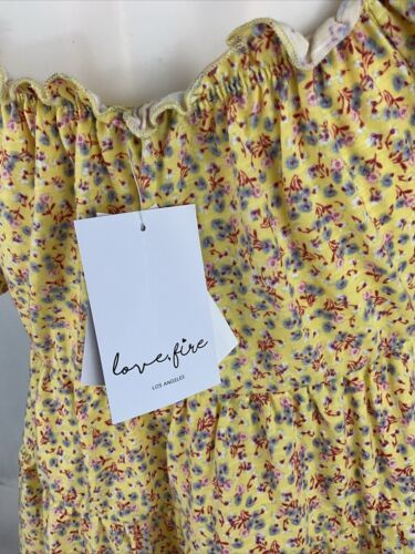 - Yellow Floral Short Tiered Top Love Fire Clothing L A NWT Small/Petite