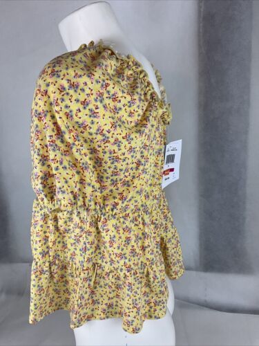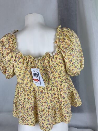 This beautiful yellow floral top from Love, Fire is perfect for any occasion. The short, tiered design adds a touch of elegance and style, while the vibrant colors and patterns make it a standout piece. Available in size PS, this blouse is perfect for petites and small women.