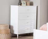 Features: Modern Chest Constructed from Rubberwood and Engineered Wood Scalloped wood trim exudes modern charm Four (4) wide drawers offer ample storage for clothes, linens, and more Tapered metal drawer pulls add an elegant touch Ring-turned legs provide excellent stability while adding a touch of timeless flair Set Includes: One (1) Chest