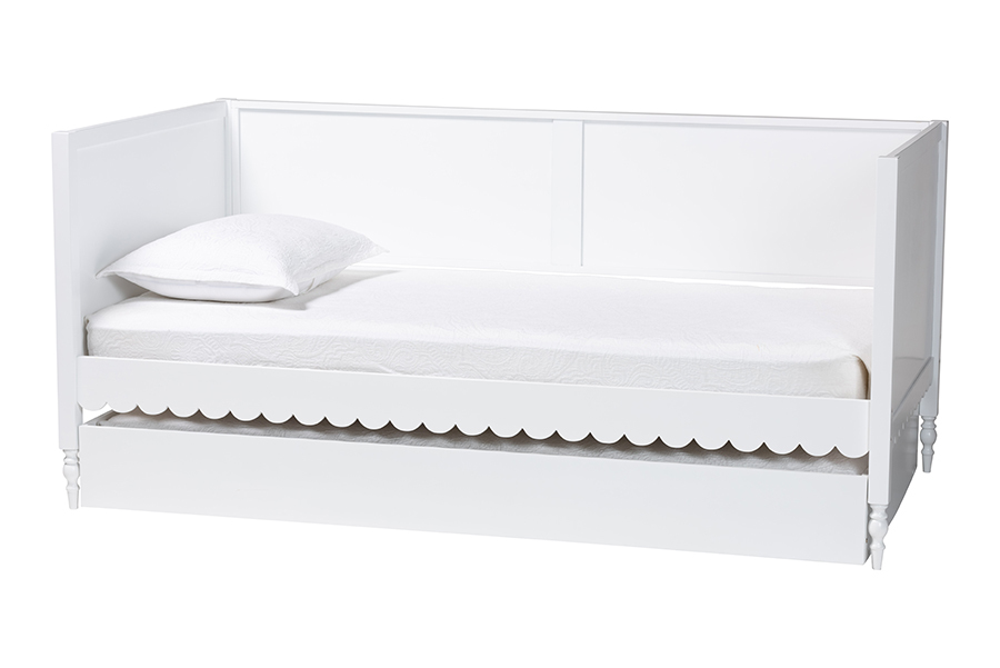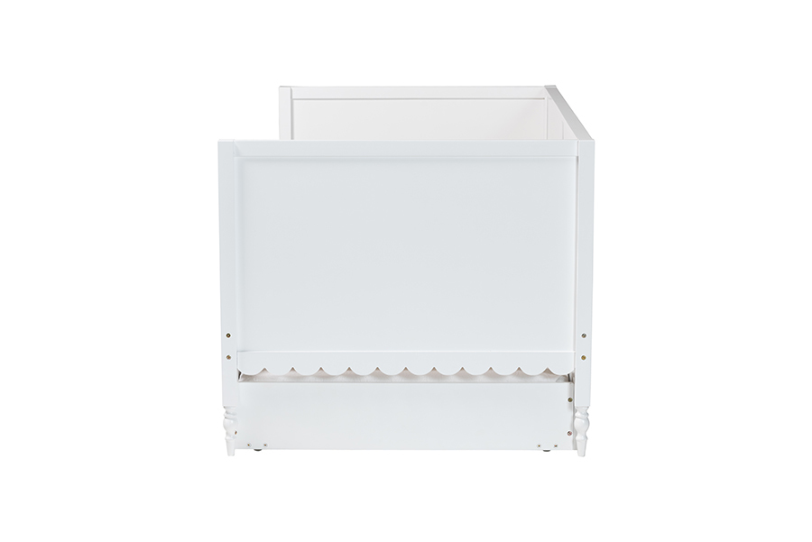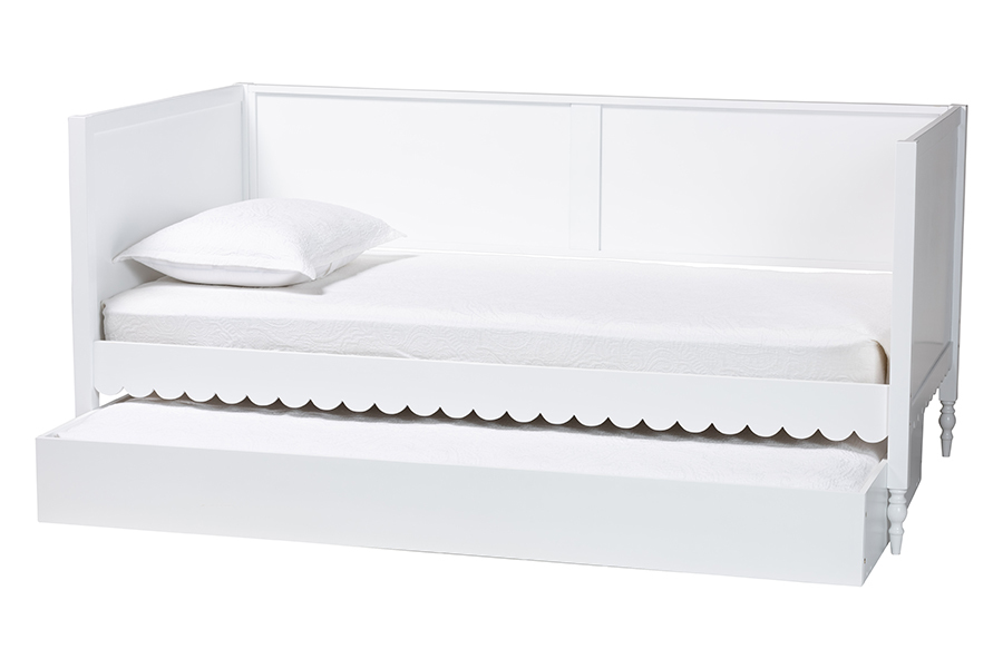 - Ygritte Modern White Wood Twin Daybed with Scalloped Edges