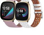 - Yibcaiic Leather Bands Compatible Fitbit Versa 4 3 Sense Floral Hollow-out