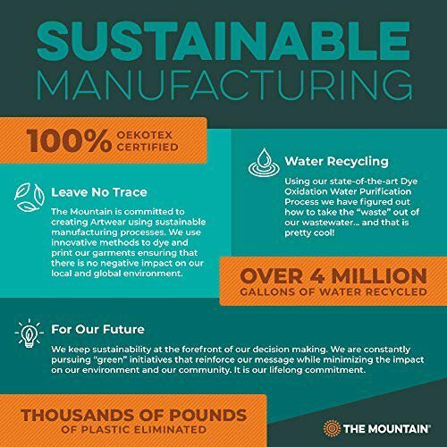 The Mountain unisex adult graphical t-shirts are imported into the USA where the graphic design is printed onto the shirt using our unique process. This process helps create the unique look of our shirts where the images appear to be part of the clothing instead of just pasted on. Our process provides customers with a superior product that ensures our clothing keeps looking good after surviving the onslaught from your washing machine and dryer.