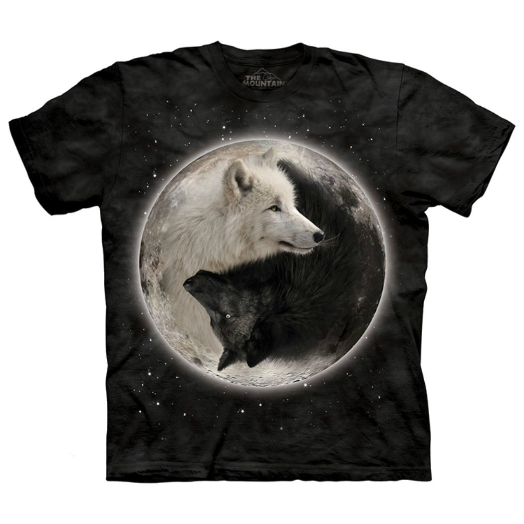 T-Shirt CollectionThe MountainTitled: Yin Yang Wolf MatesColor: Blue GreyItem: 10-5687004Material: 100% CottonThe Mountain unisex adult graphical t-shirts are imported into the USA where the graphic design is printed onto the shirt using our unique process. This process helps create the unique look of our shirts where the images appear to be part of the clothing instead of just pasted on. Our process provides customers with a superior product that ensures our clothing keeps looking good after surviving the onslaught from your washing machine and dryer.
