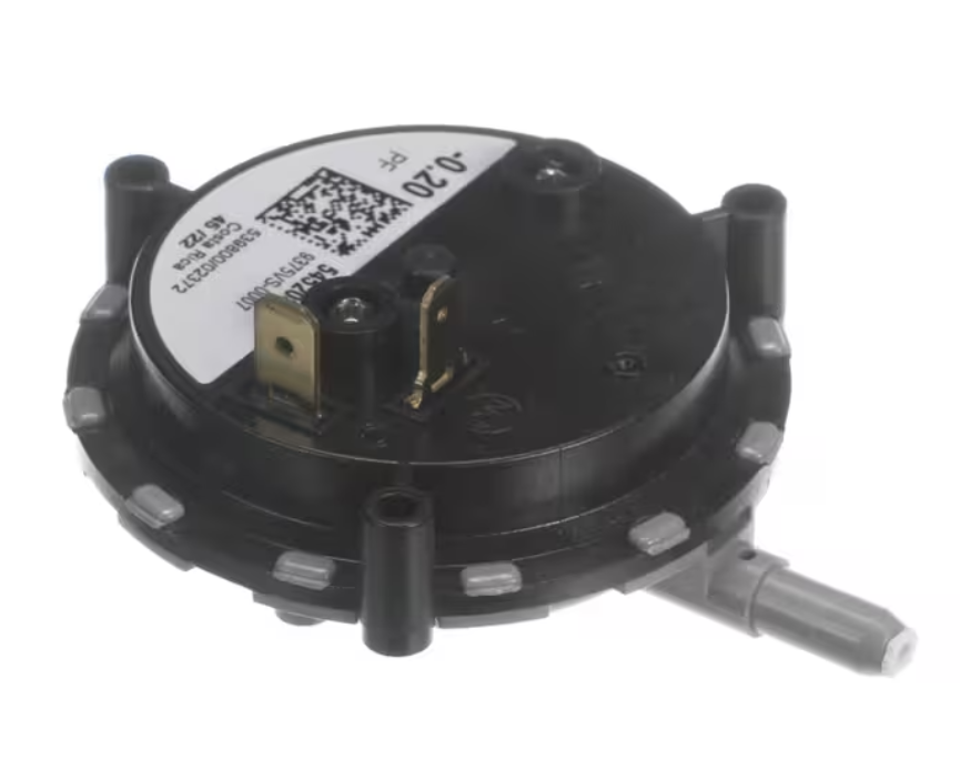 The York 5452080 (9375VS-0007, 539800/02372) Pressure Switch is a -0.20" WC PF (Pressure Fall) rated safety component designed to monitor and control air pressure within HVAC systems. This precision switch helps ensure safe furnace operation by detecting proper airflow and preventing system damage or malfunction. Built to York OEM standards, it provides consistent, reliable performance and long service life in demanding heating and ventilation environments.