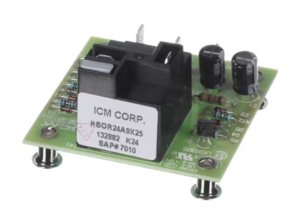 The York HBOR24A9X25 (132882) Time Delay Relay (1 Unit) is a genuine OEM replacement part designed to control the operation timing of the draft inducer motor in York HVAC systems. It ensures proper sequencing and safe startup by delaying the motor activation to maintain reliable heating performance.