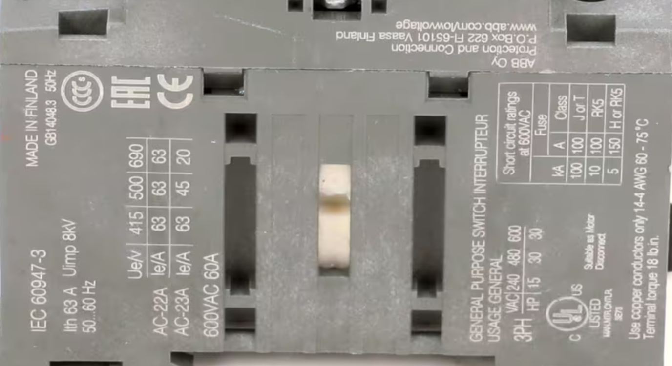 The York IEC 60947-3 Circuit Breaker is a heavy-duty 3-pole electrical protection device engineered to safeguard HVAC equipment and electrical systems from overloads and short circuits. Rated for 600 volts and 60 amps, this industrial-grade breaker ensures reliable performance, electrical safety, and compliance with international IEC standards. Its robust construction and precise trip mechanism make it ideal for demanding commercial and industrial York system applications.