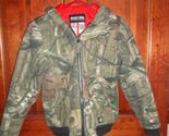 Mossy Oak Youth Camo jacket. Quilted lining, zip front with a hood. No stains or tears. Nice pattern - warm but, I wouldn't say warm enough for cold winter hunting. More for Spring or early to mid-season temps.