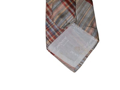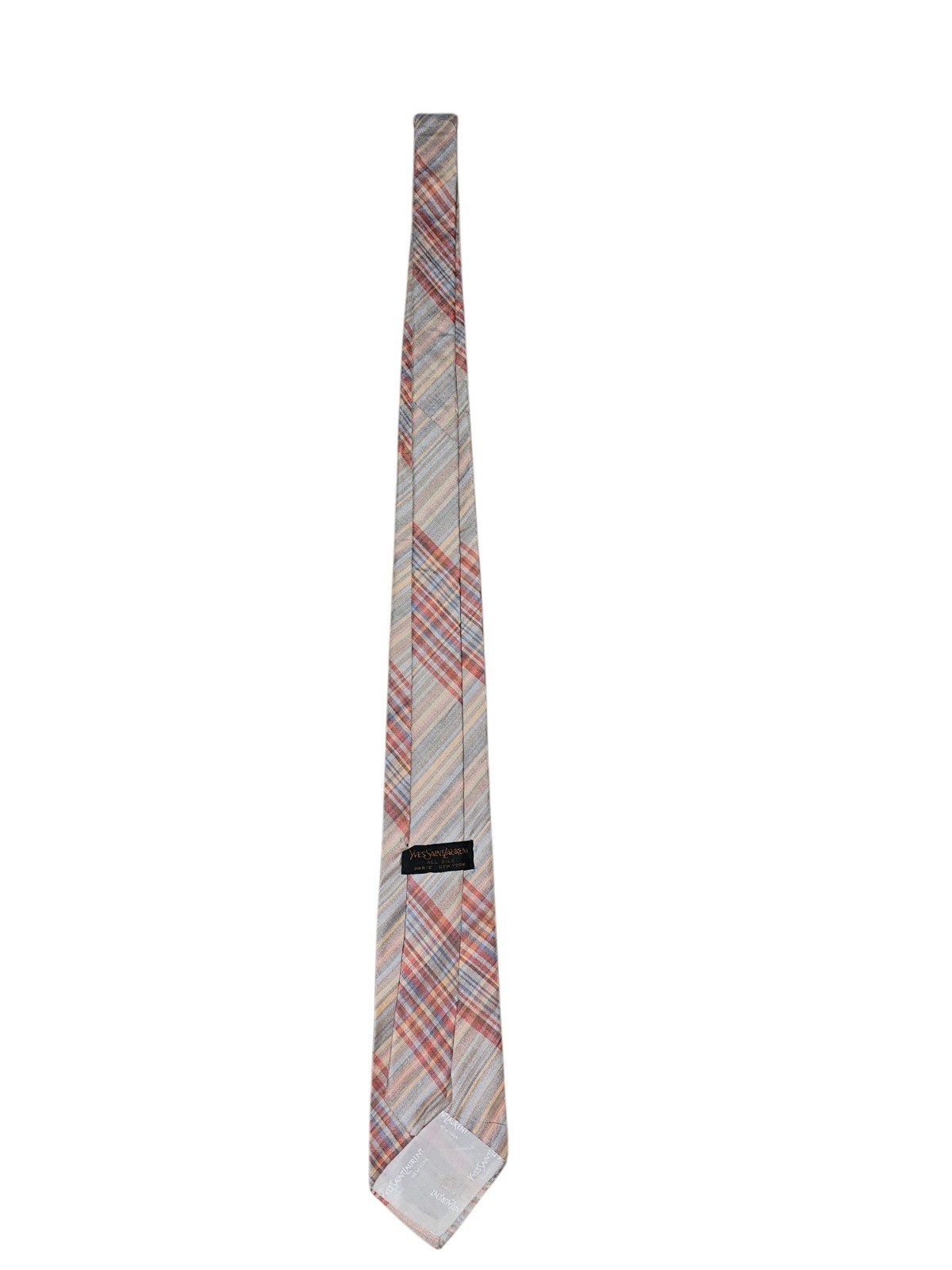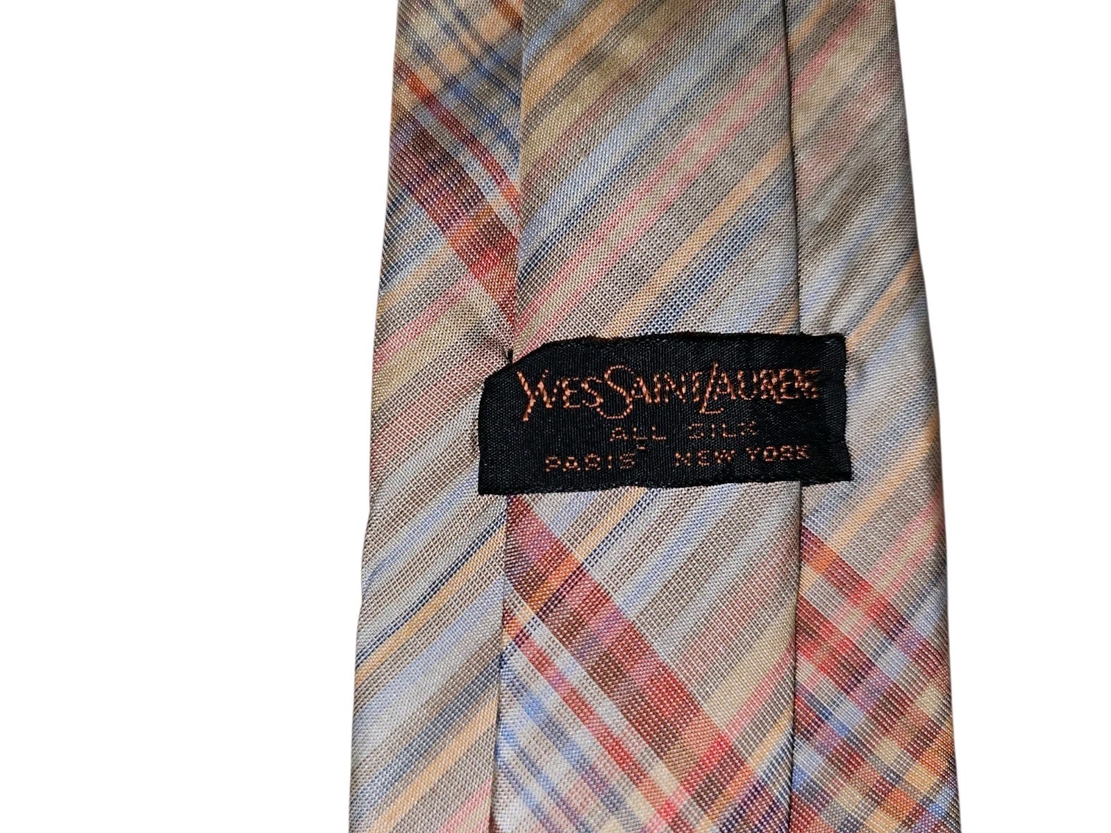- Yves Saint Laurent Necktie Mens Plaid Stripe Pastel 100% Silk Vintage YSL Tie