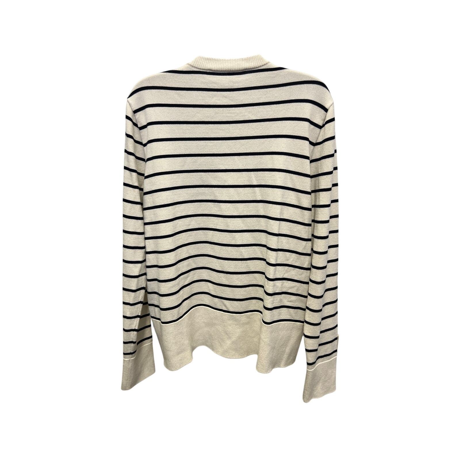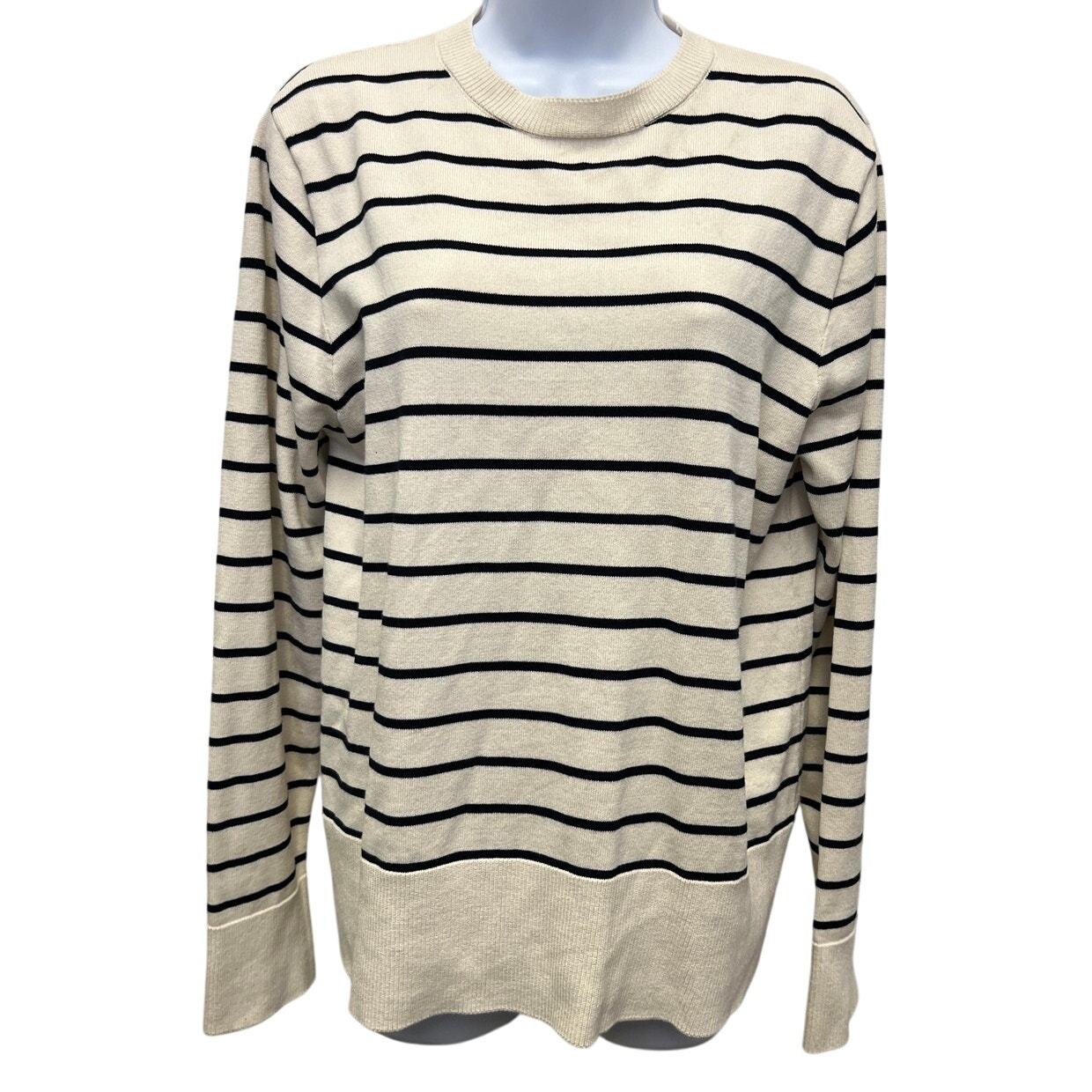 ZARA Striped Knit Sweater Cream Black SZ Large Classic Parisian Chic Cozy Knit