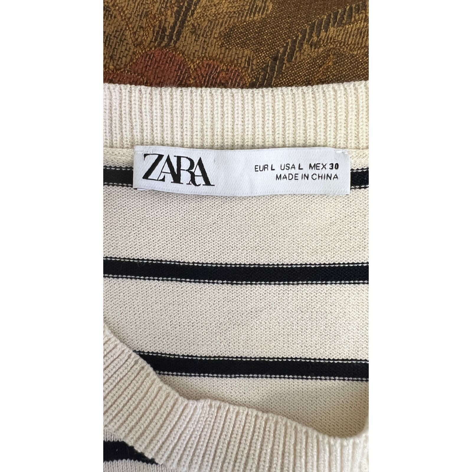 - ZARA Striped Knit Sweater Cream Black SZ Large Classic Parisian Chic Cozy Knit