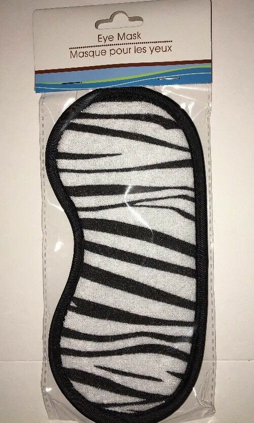 - ZEBRA Sleep Eye Mask Black & White Terry & Poly-Satin Zebra Print-SHIP N 24 HRS