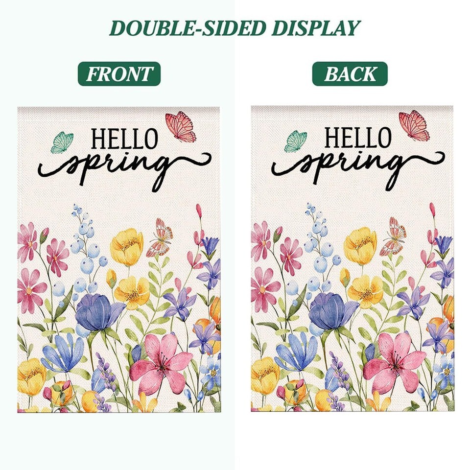 - ZRTR Hello Spring Garden Flag 12x18 Inch Double Sided Burlap Floral