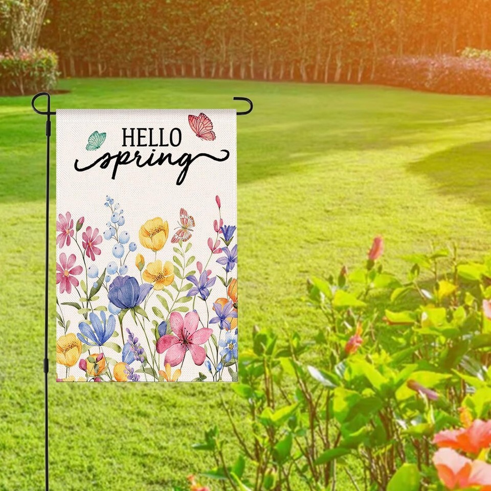 At 12 inches by 18 inches, it's the perfect size to make a statement without overwhelming your outdoor space. Elevate your curb appeal and celebrate the joyous season with this delightful Hello Spring garden flag.