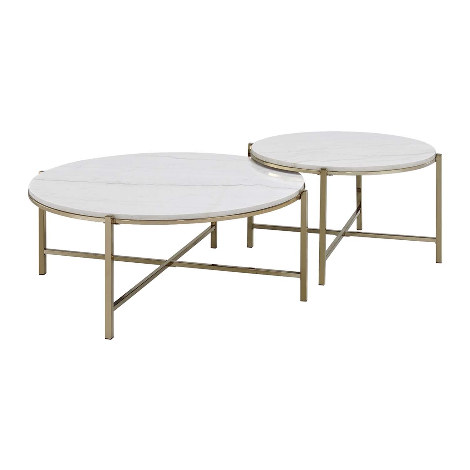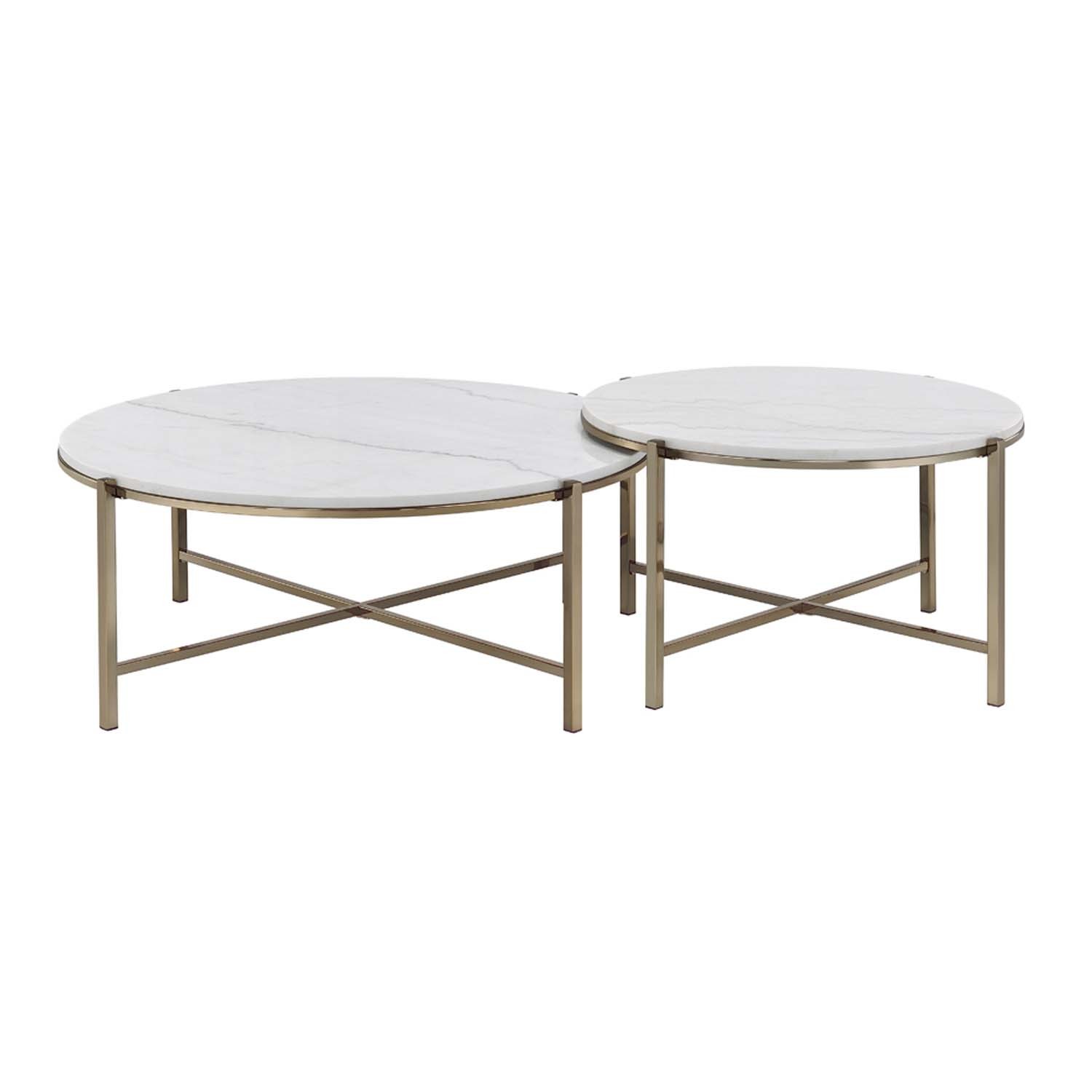 Zaidee 2PC Nesting Table Set, Natural Marble Top & Nickel Finish