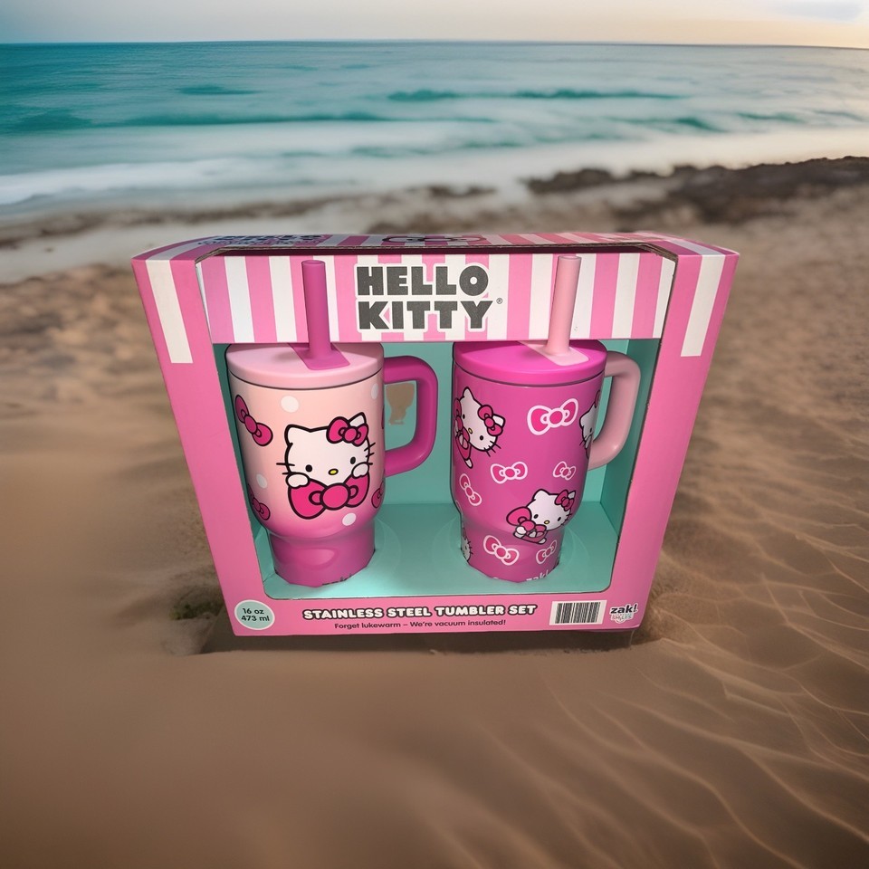 - Zak Designs 16oz Hello Kitty Straw Handle Tumbler, Stainless Vacuum VHTF 2PC