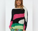Zaket Plover Wave Jumper Sweater Multicolor Size XS - 95 cotton 5 cashmere - boatneck, subtle batwing sleeve in black, white, pink and green