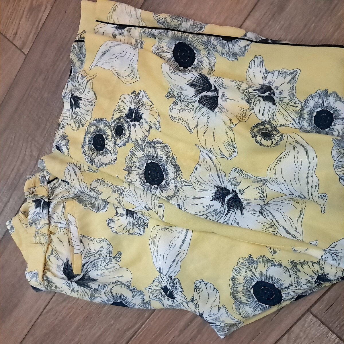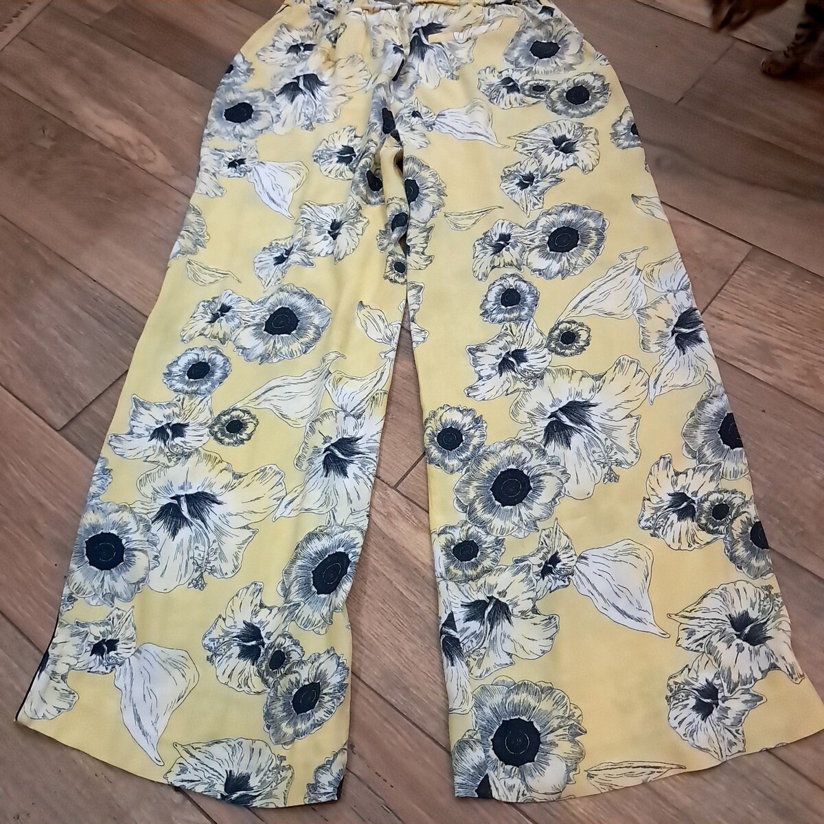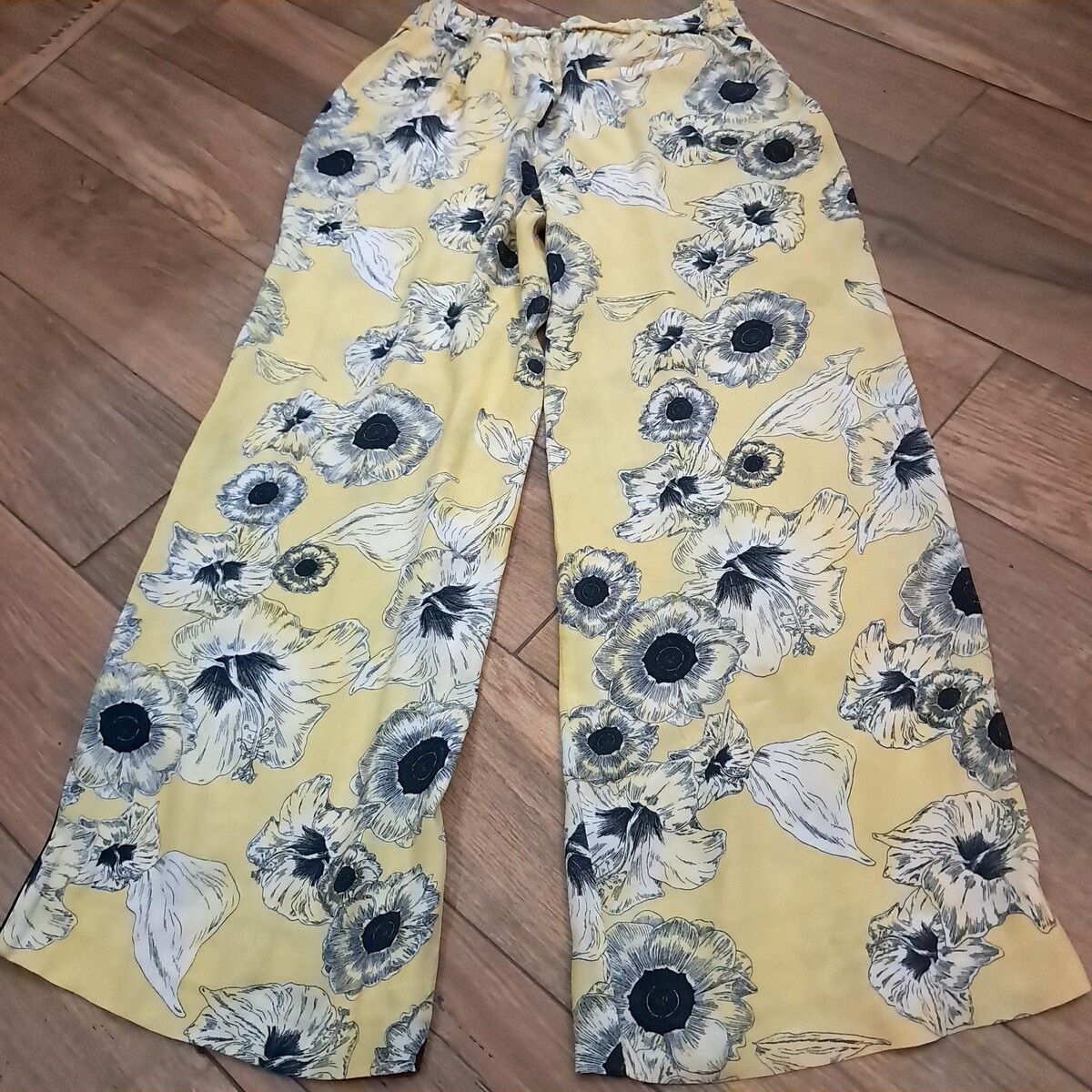 - Zara Basic Collection Women's Size M Pants Yellow Floral Print Wide Leg Trouser