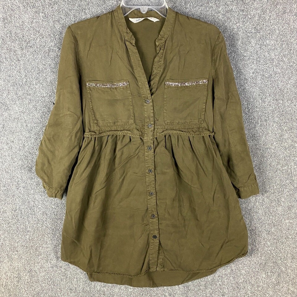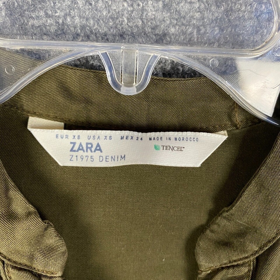 - Zara Dress Women's XS Green Shirt Dress Long Sleeve 100% Lyocell Extra Small