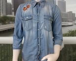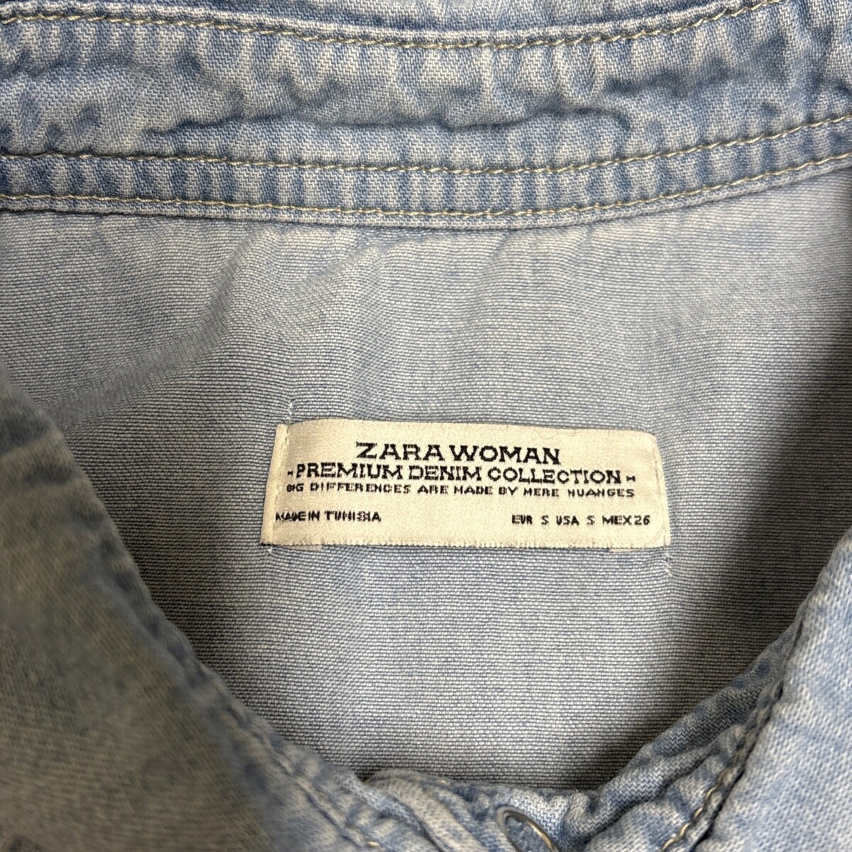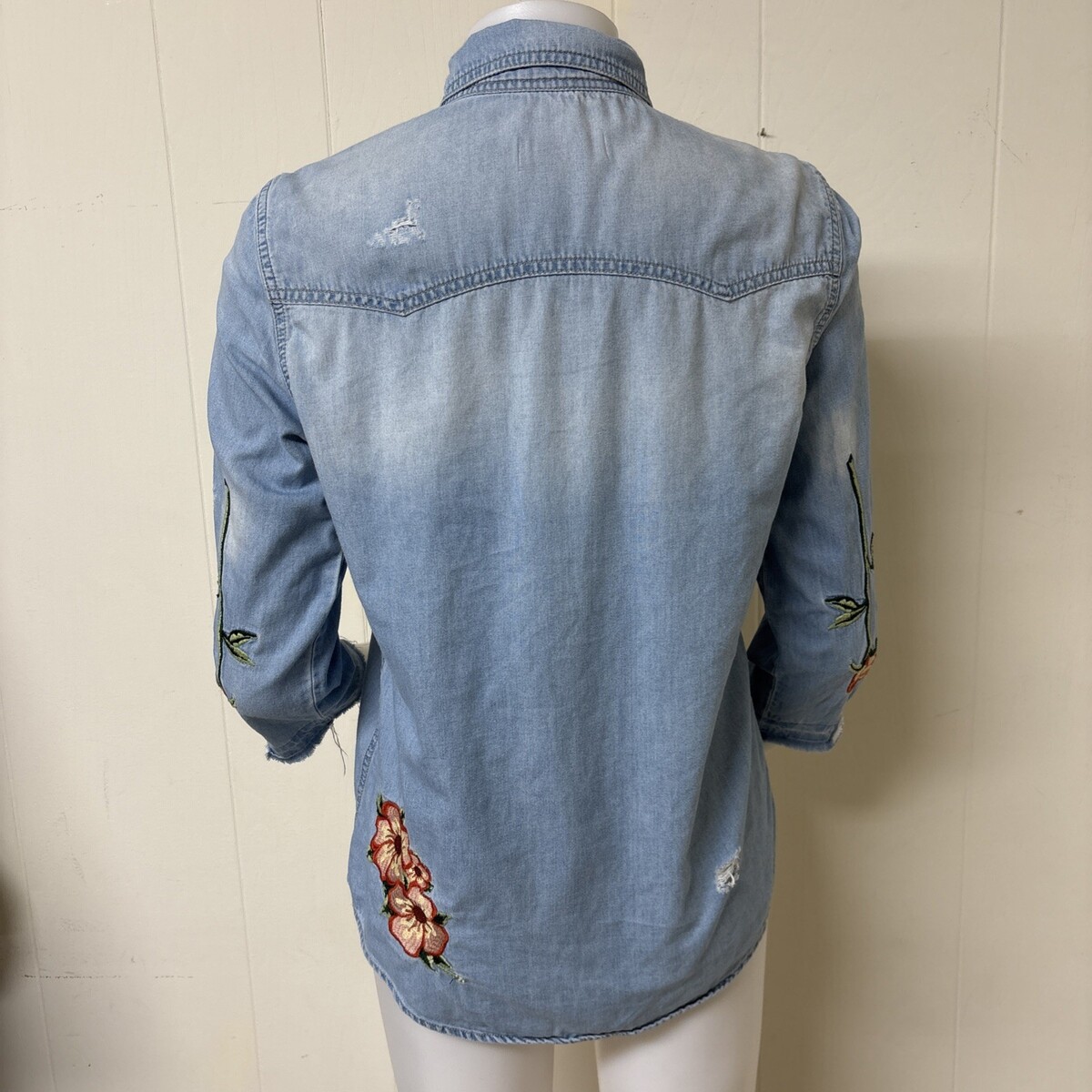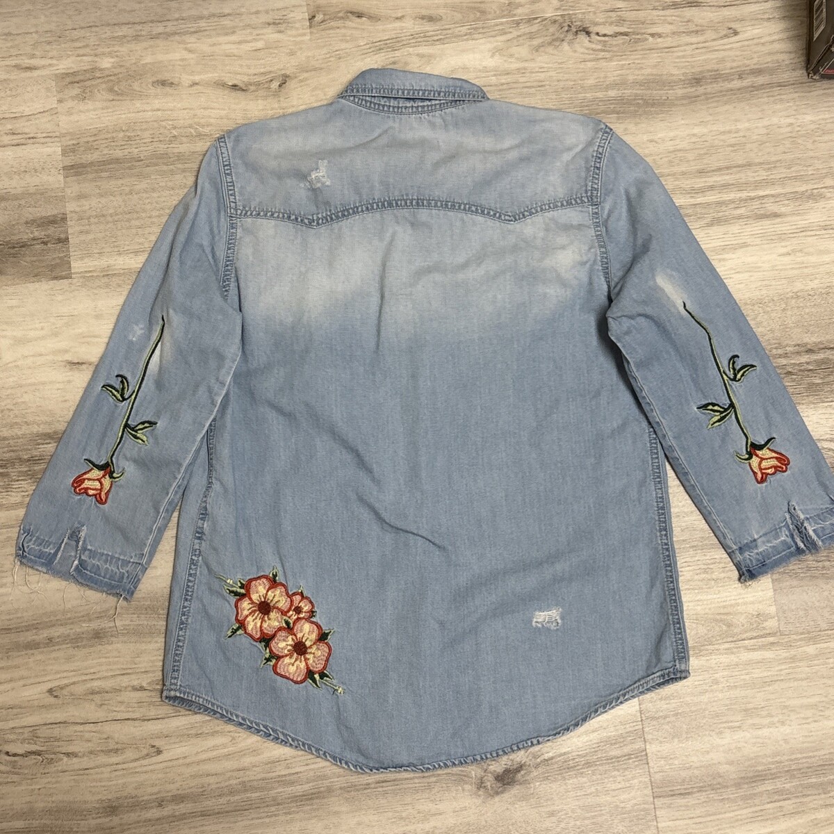 - Zara Embroidered Pearl Snap Shirt Womens S Distressed Blue Western Denim Top