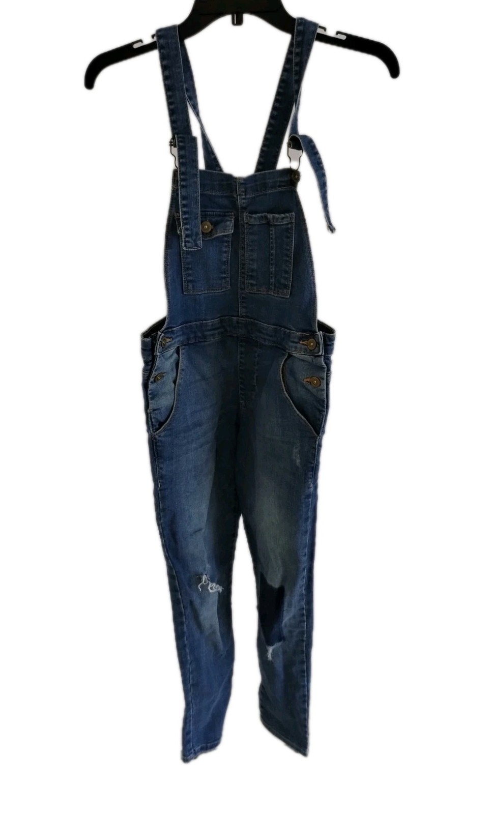 - Zara Girls Distressed Patch Holes Jean Denim Overalls Sz 11-12 Blue 152cm