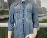 - Zara Western Denim Shirt Womens S Distressed Blue Embroidered Pearl Snap Top
