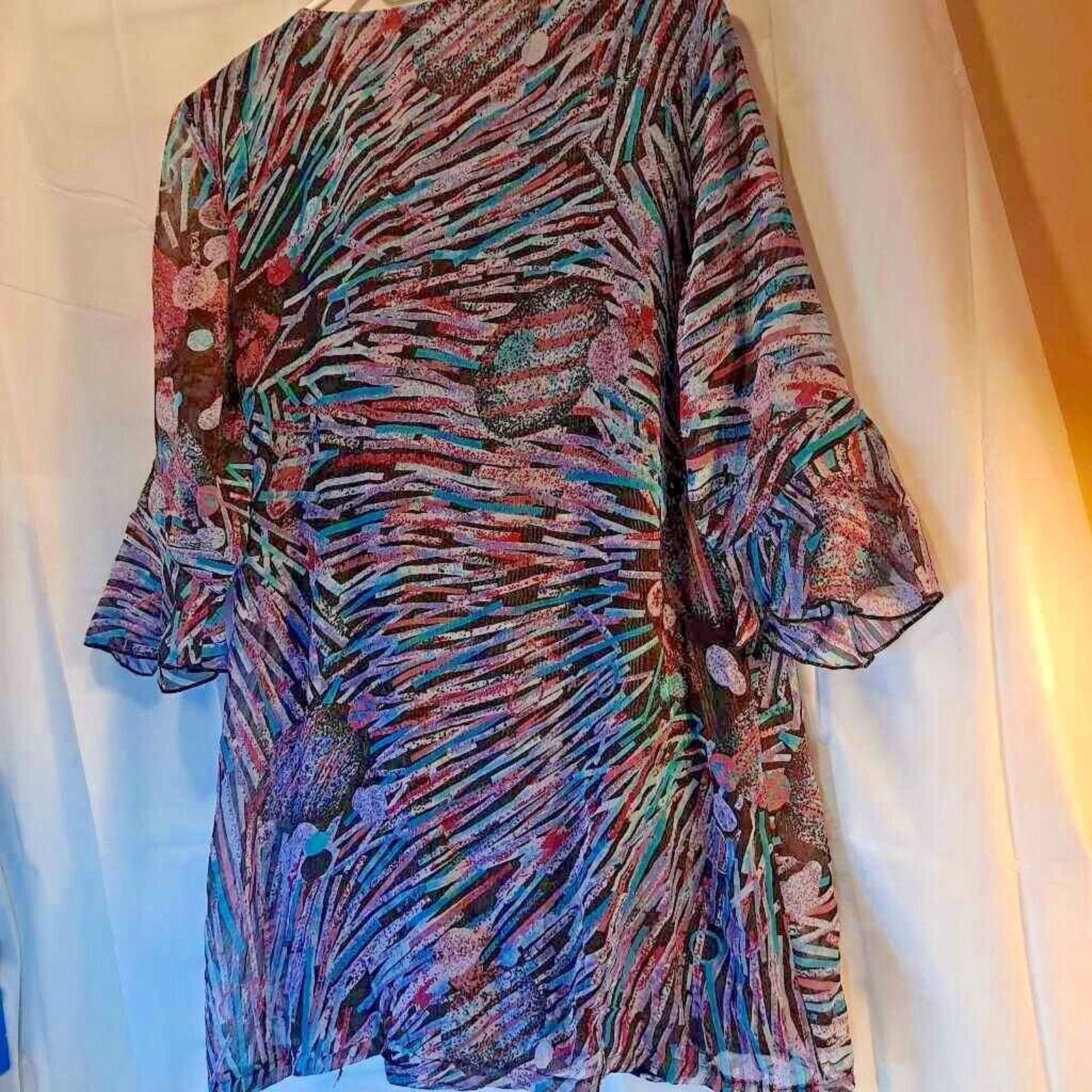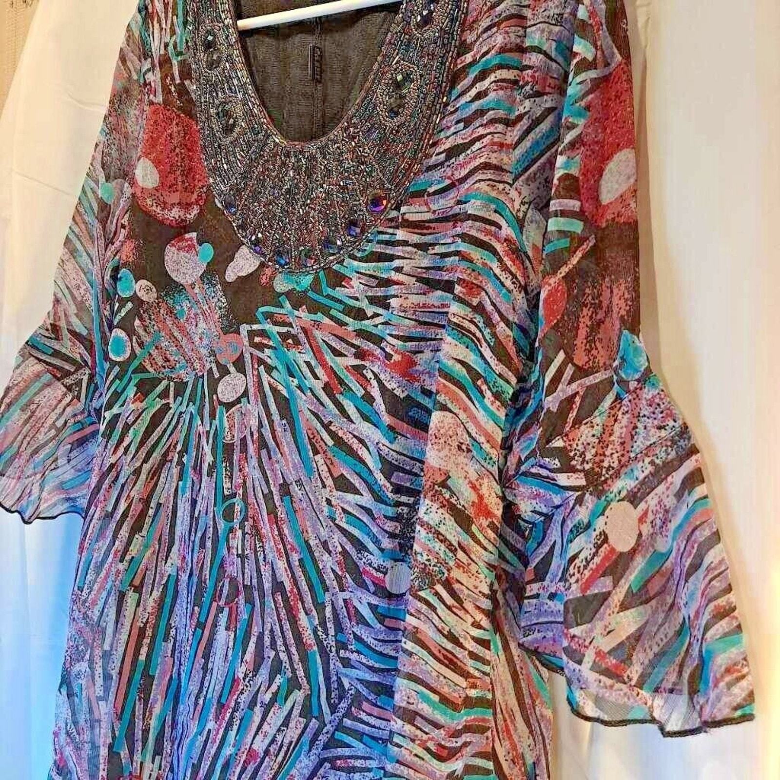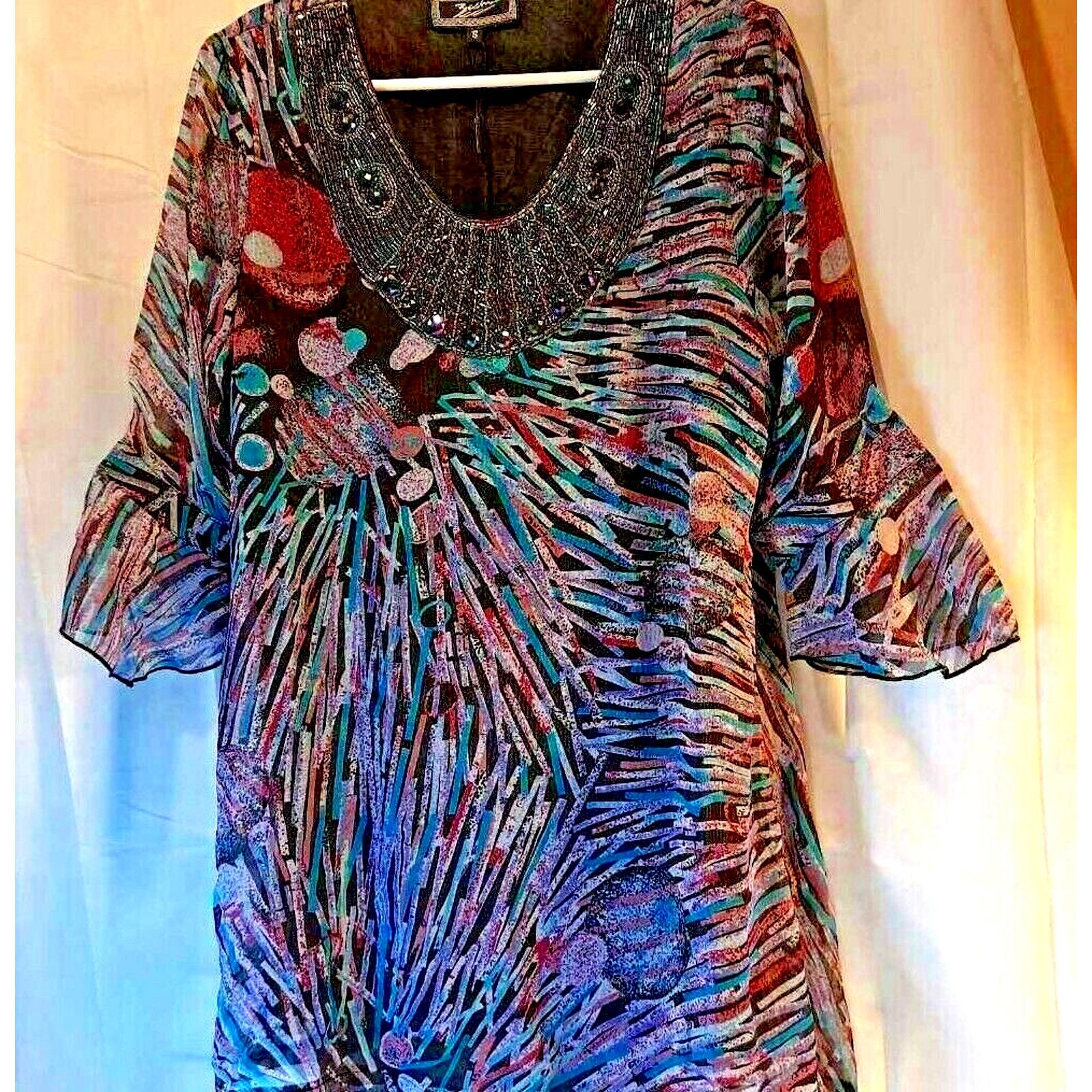 Zashi Women's Multicolor Dress - Geometric Embellished Flounce Sleeve S New
