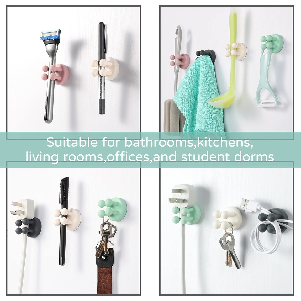 Cute And Interesting DesignThis silicone hook has a stylish and innovative design and is easy to use. four foot hooks can firmly clamp the object, or hook objects, very stable and practical, and it is also very convenient when taking objects.A colorful combination and a cute and charming design, it is also a perfect decoration.