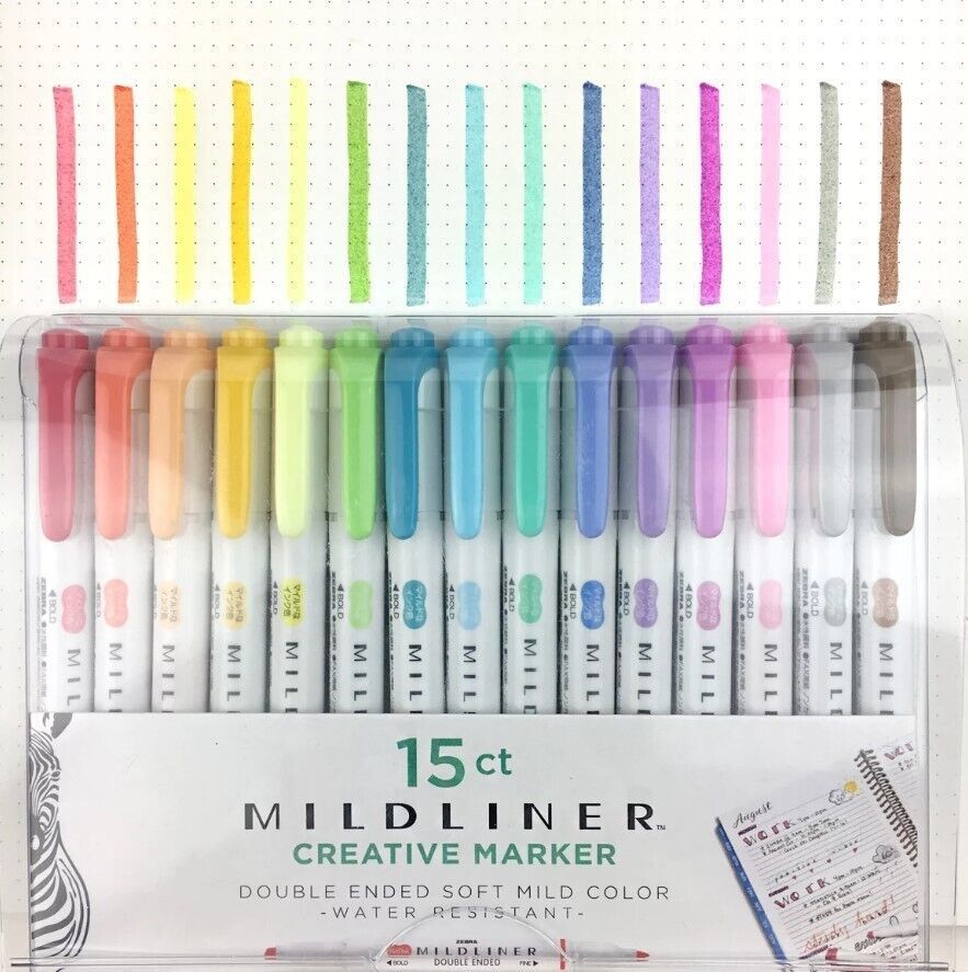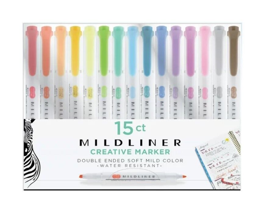 - Zebra Mildliner Double Ended Highlighter Set, Assorted Colors, 15 Ct