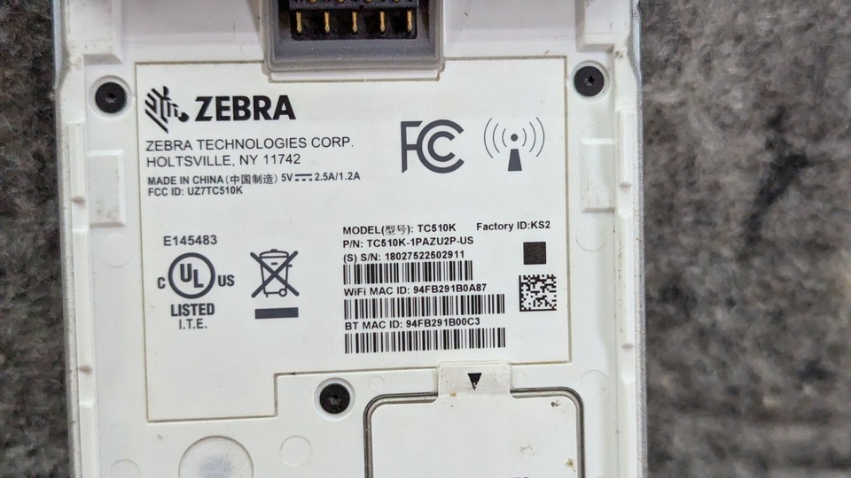 Zebra TC510K Mobile Computer Scanner 5" LCD 2D - Missing Back Cover