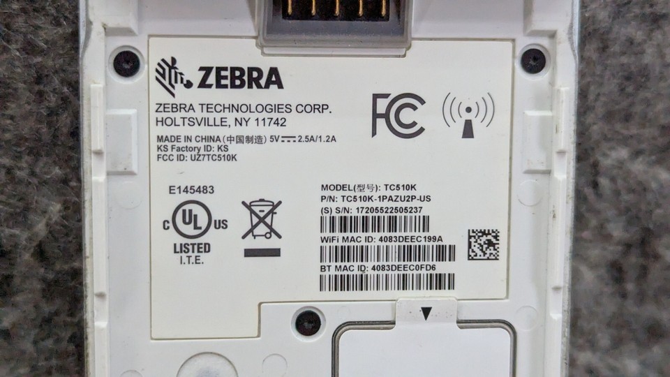 Zebra TC510K Mobile Computer Scanner 5" LCD 2D - Missing Volume Button