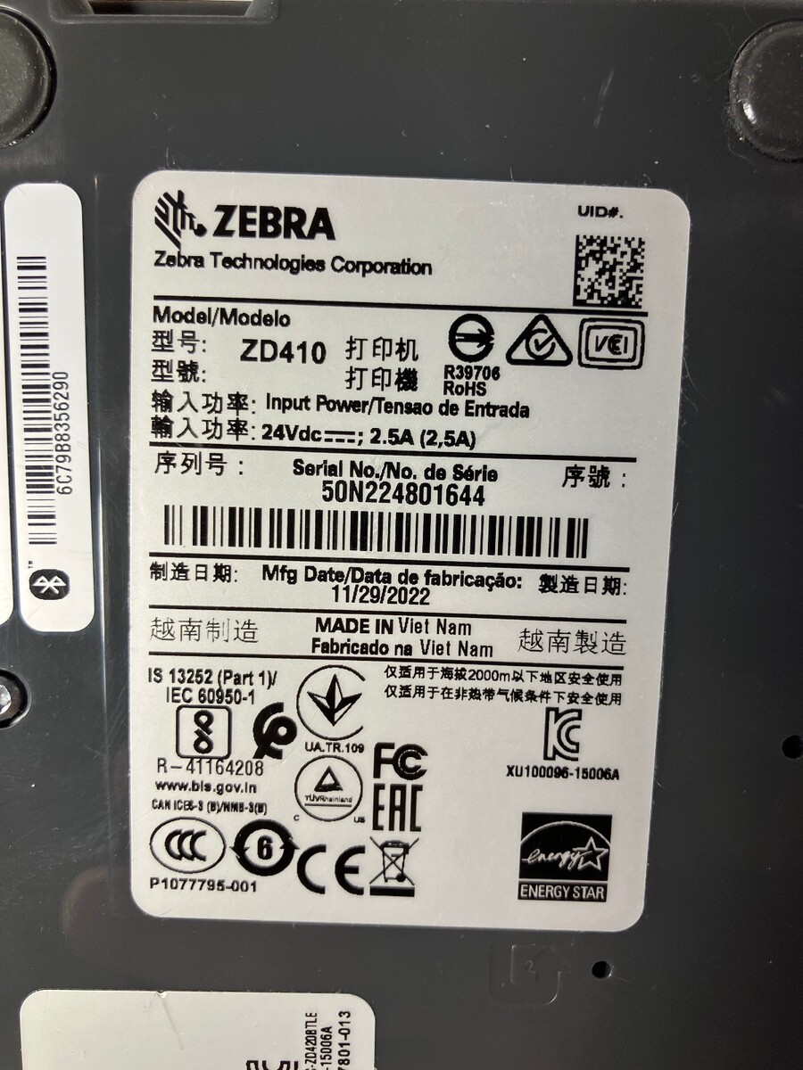 is for a Zebra ZD410 ZD41022-D01E00EZ Bluetooth, USB Label Printer with Power Adapter.