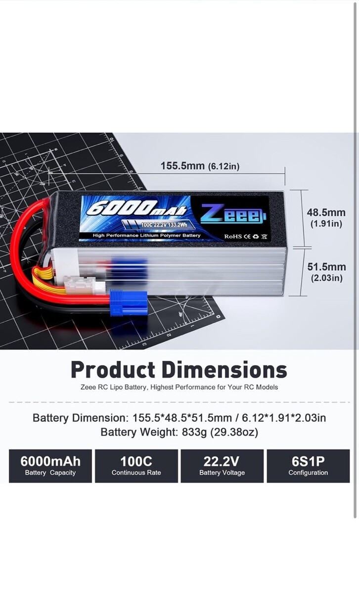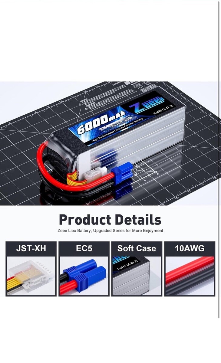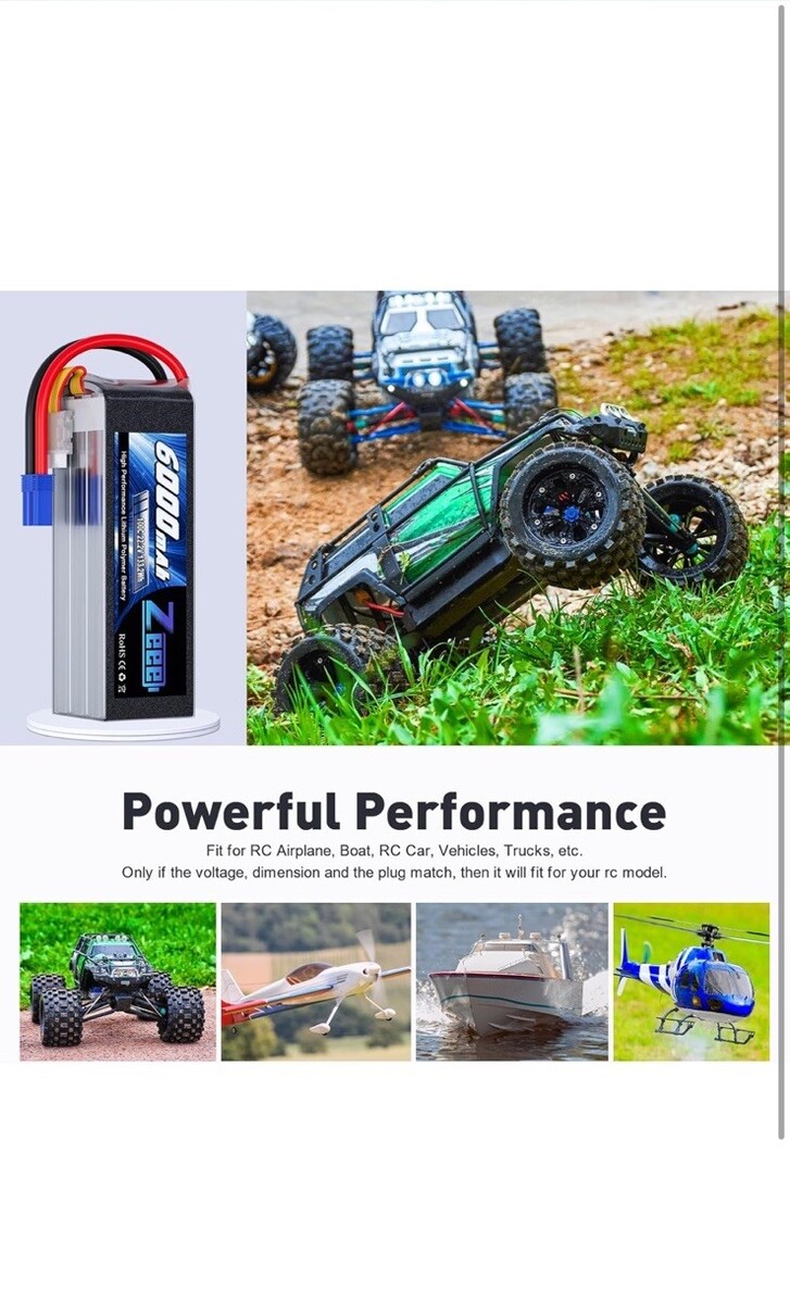 - Zeee 22.2V 100C 6000mAh 6S Lipo Battery EC5 for RC Car Quadcopter Airplane Heli