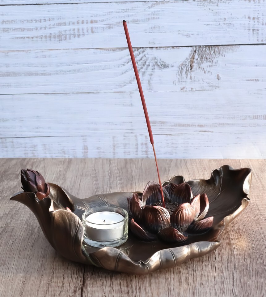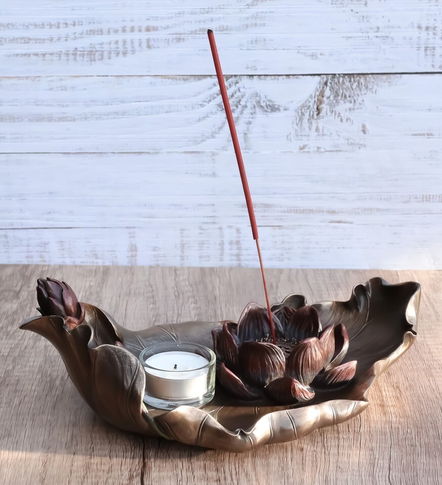 Zen Garden Buddha Lotus Flower Incense Burner Votive Tea Light Candleholder