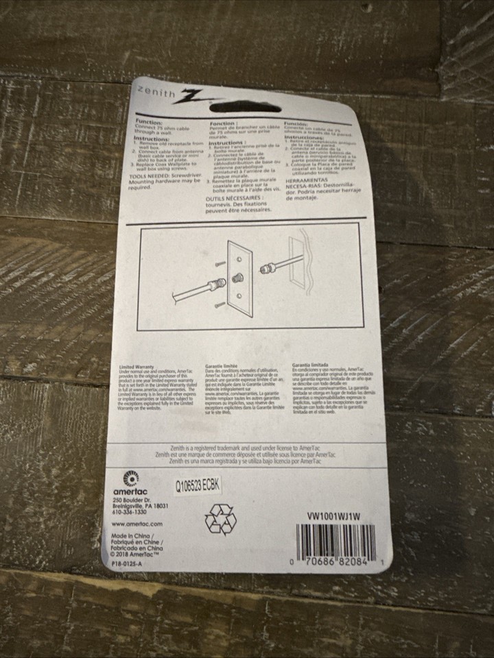 The Zenith Coax Wallplate is a wall plate designed specifically for coaxial cables, ensuring a secure and organized installation in your home. With the Zenith brand reputation for quality products, this wallplate offers a reliable solution for managing your cable connections in a neat and efficient manner. Perfect for home improvement projects involving electrical outlets, switches, and accessories, the Zenith Coax Wallplate provides a stylish and functional addition to your living space.