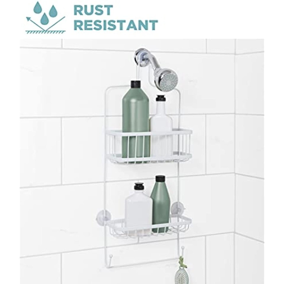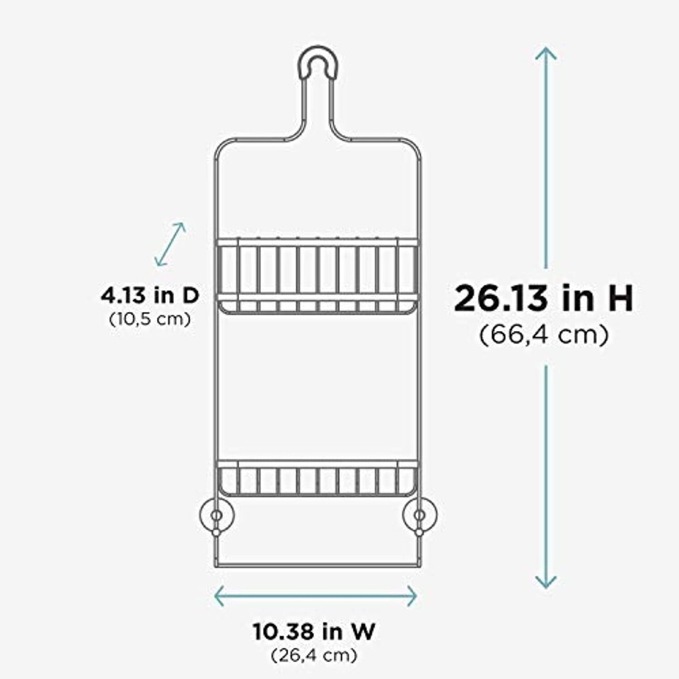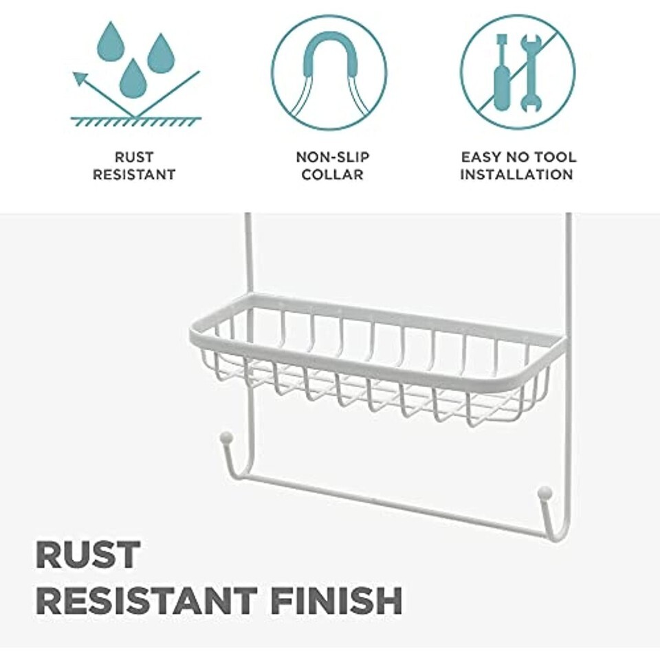 Heavy duty, rust-resistant shower caddy fits over most showerheads