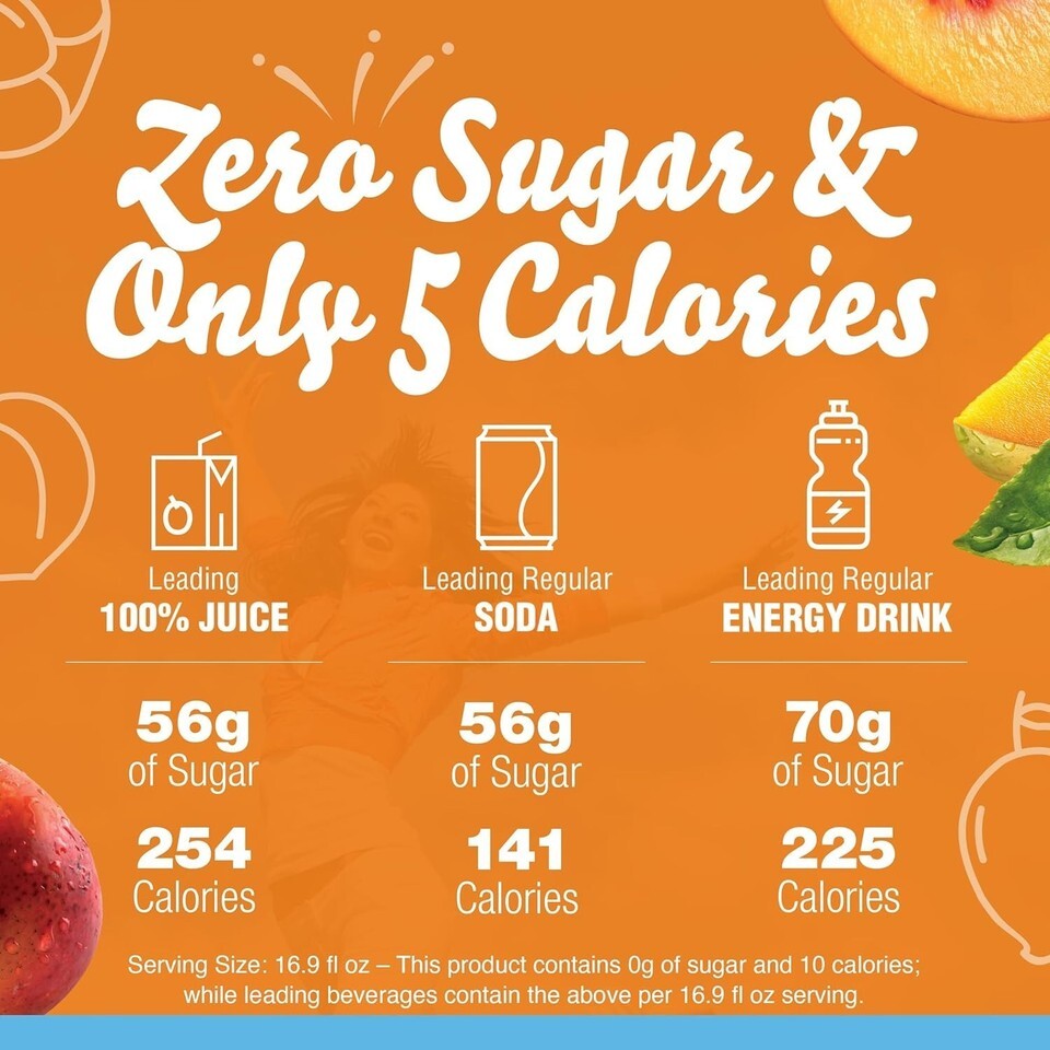 Indulge in the delightful fusion of peach and mango, paired with the refreshing essence of green tea, all without the guilt. Each packet of this powdered drink mix boasts an astonishing 90% fewer calories than leading beverages, allowing you to savor the vibrant flavors with every sip?guilt-free!