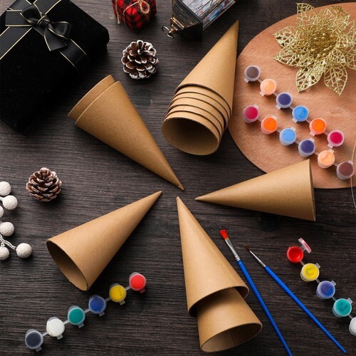Sturdy Construction: these cardboard cones for crafts are made from paper, crafting a sturdy structure for multiple uses; Their brown color makes them ideal craft items, bringing simplicity and aesthetics to many handmade projects