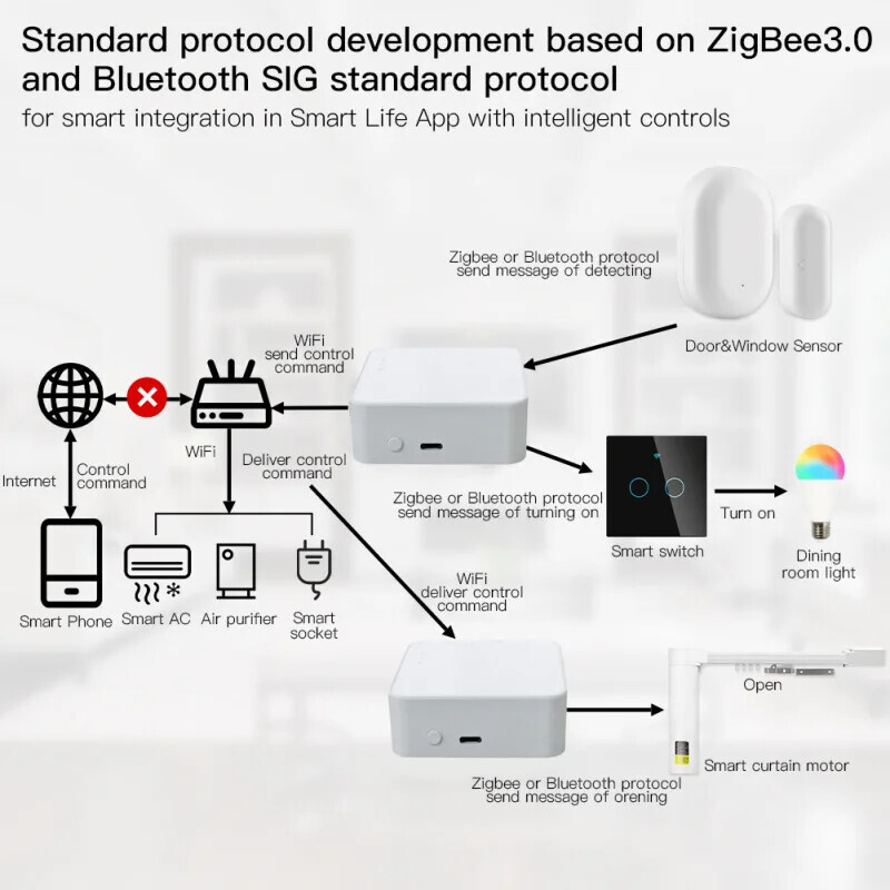 - Zigbee 3.0 Gateway Wired/Wireless Tuya WiFi Bluetooth Smart Home Bridge Remote