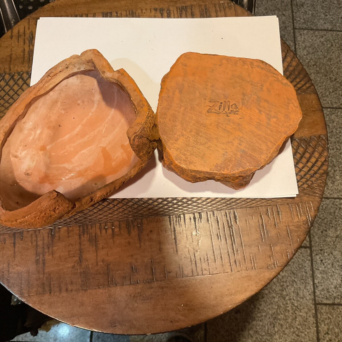 Zilla Exo-Terra granite style food / water dish and granite faux stone small reptile lair - approximately ?7 inch x 6? across 1-3? tall - nice Zilla original branded and embossed original product water dish -