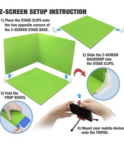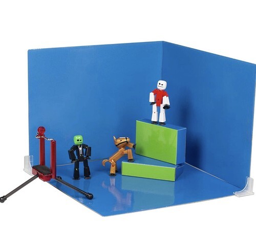 EVERYTHING YOU NEED: Stikbots are easy to pose and stay in place with their suction cups; Includes 3 Stikbot action figures (solid mixed color, the Botchelor, and horse), 1 Mobile Phone Tripod and 2-in-1 Green Screen Stage (opposite side is blue)