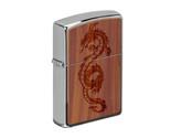 - Zippo Lighter - Woodchuck Dragon on Cedar Inlay Brushed Chrome - 855968