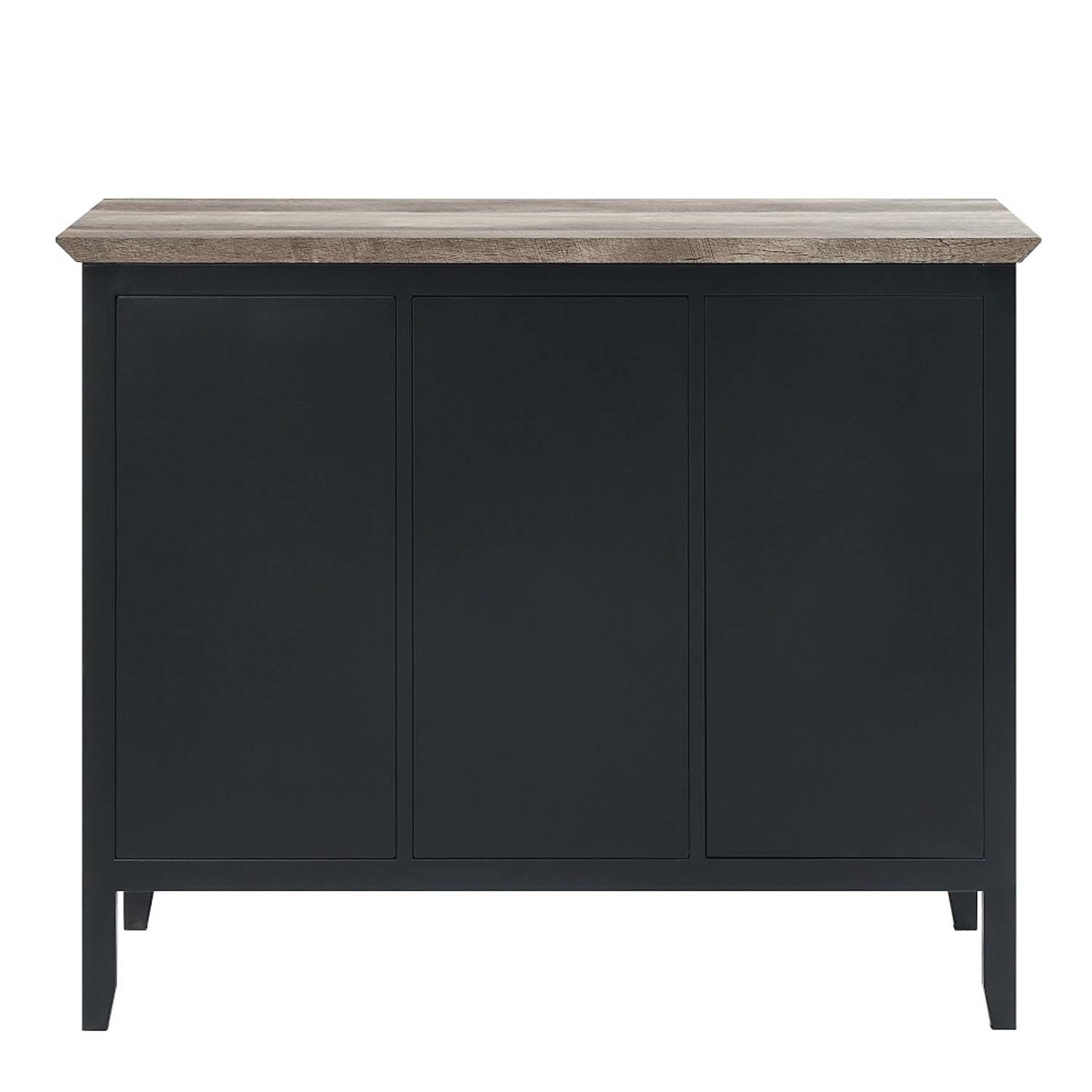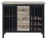 There are endless possibilities with thisZudoraserver cabinet to maximize your space. It gives ample storage space while keeping everything contained and out of sight. Two black slatted doors open to reveal a stemware holder, bottle storage, and an ample storage space, while the other side can be used to display your favorite vintage finds. The three drawers help keep a clutter-free home. The antique oak tabletop and open shelves are perfect to showcase coffee maker and cups, plate, or even your favorite decor.