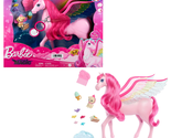 Let imaginations soar on the wings of this pink Barbie pegasus! Kids can play out their favorite scenes from Barbie A Touch of Magic, or come up with fantastical adventures of their own. The pegasus features rainbow lights and sounds activated in several ways. She also comes with a magical puppy and sweet accessories! Colors and decorations may vary.