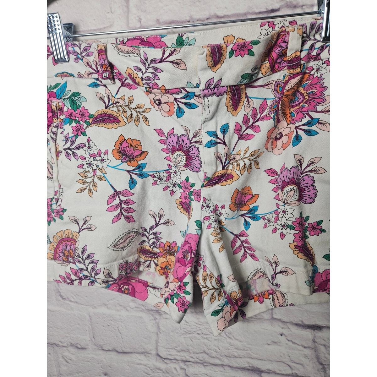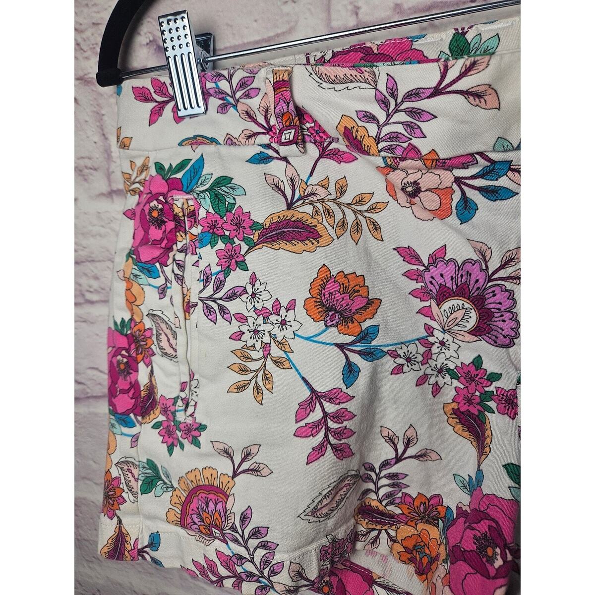 - a.n.a A New Approach Women's Floral Twill Short Size 8 Pockets Pink Orange Boho