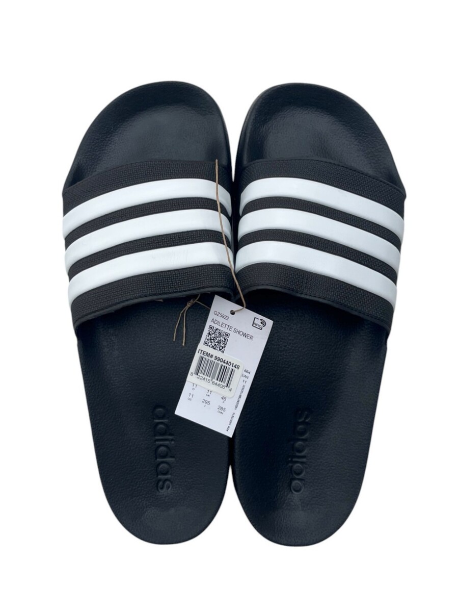 - adidas Mens 11 Adilette Black White Slip-On Cushion Lightweight Shower Slides
