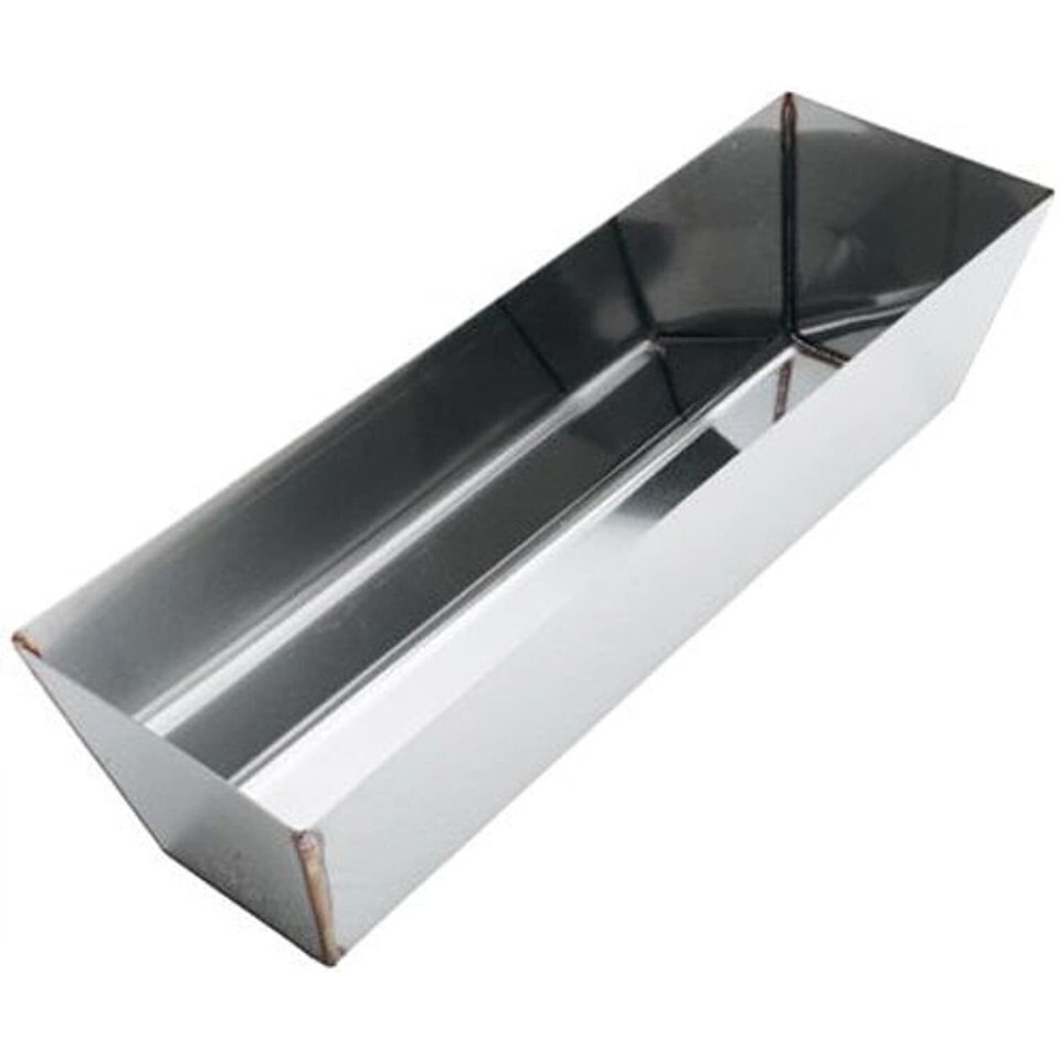 12", Contoured Stainless Steel, Heliarc Mud Pan, Smooth Tapered Ends Sides, Heliarc Weld Prevents Leaking, Top Edge Sheared To Clean Knife, Smooth Contoured Bottom Fits Naturally In The Hand, Allows Material To Be Scooped From The Pan Cleanly Easily.